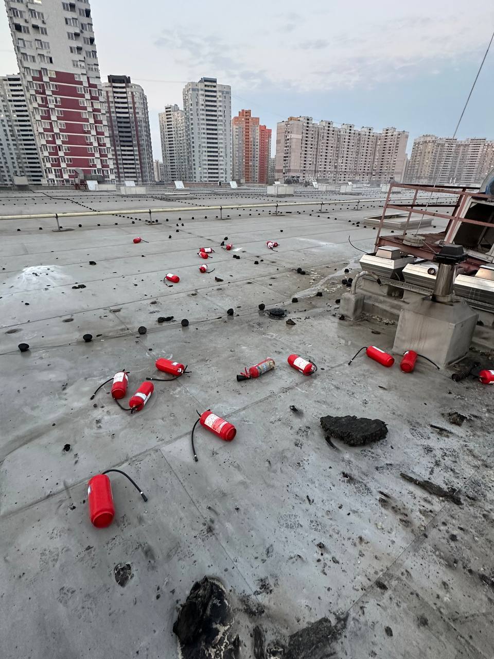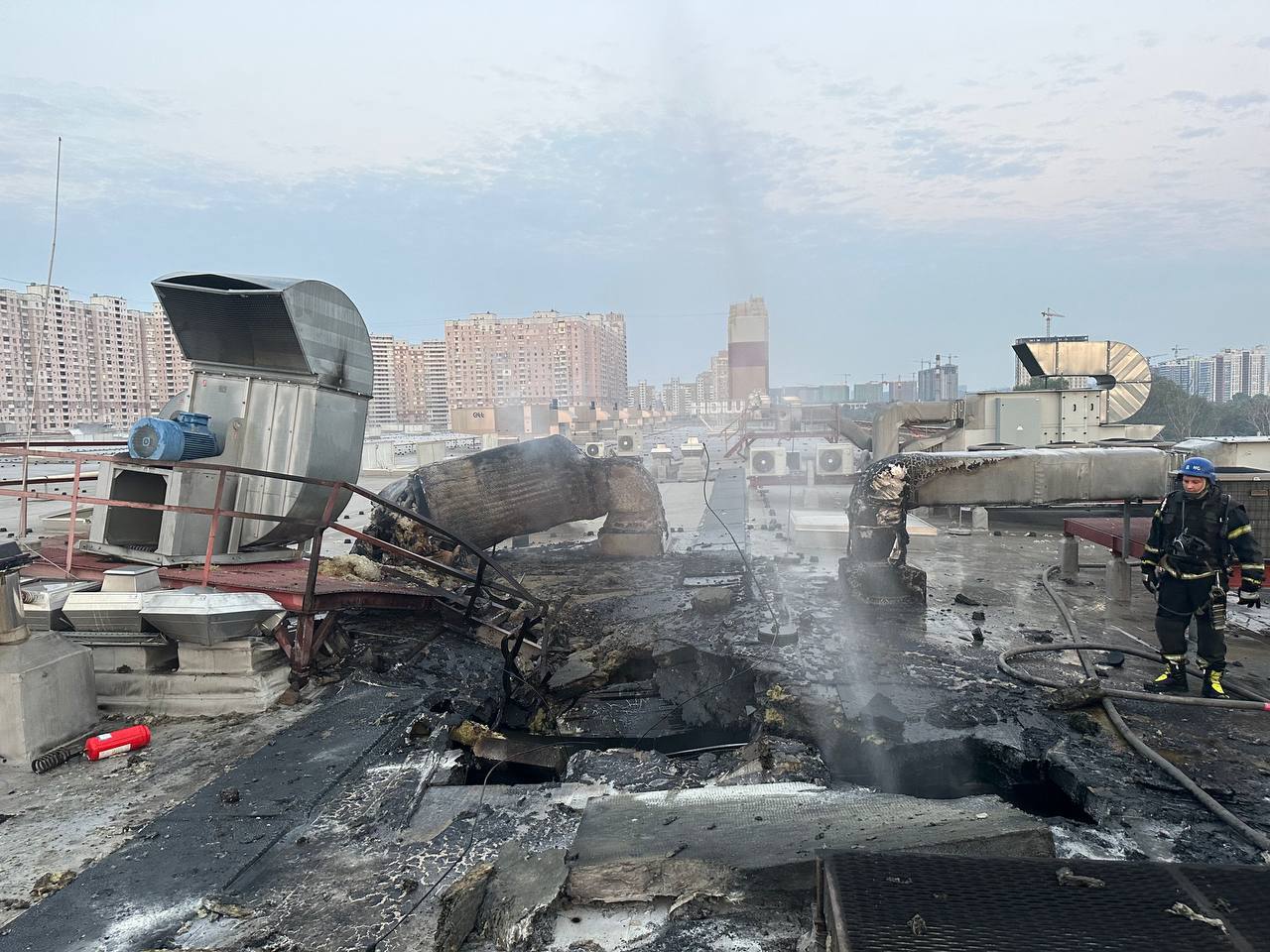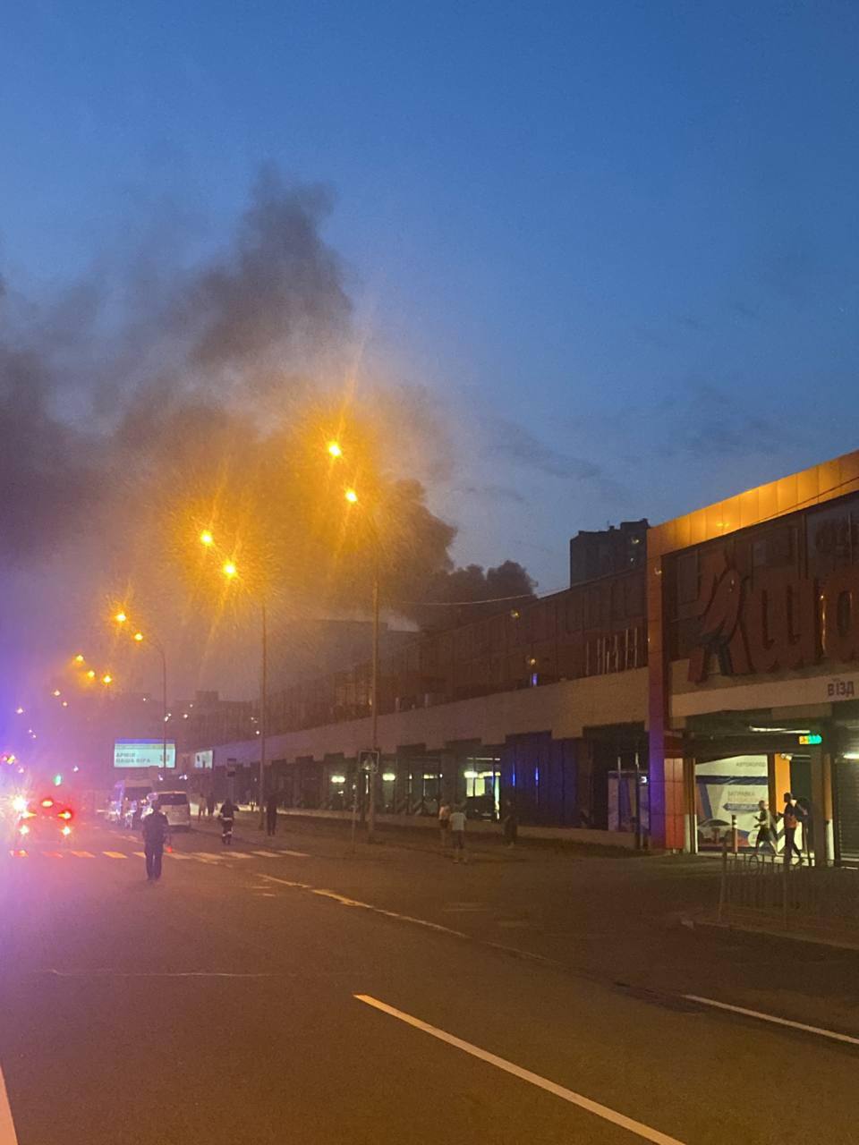 За інформацією міського голови Києва Віталія Кличка, в Дарницькому районі пошкоджено дах торгового центру, а в Шевченківському районі є займання в адмінбудівлі і на відкритій місцевості.