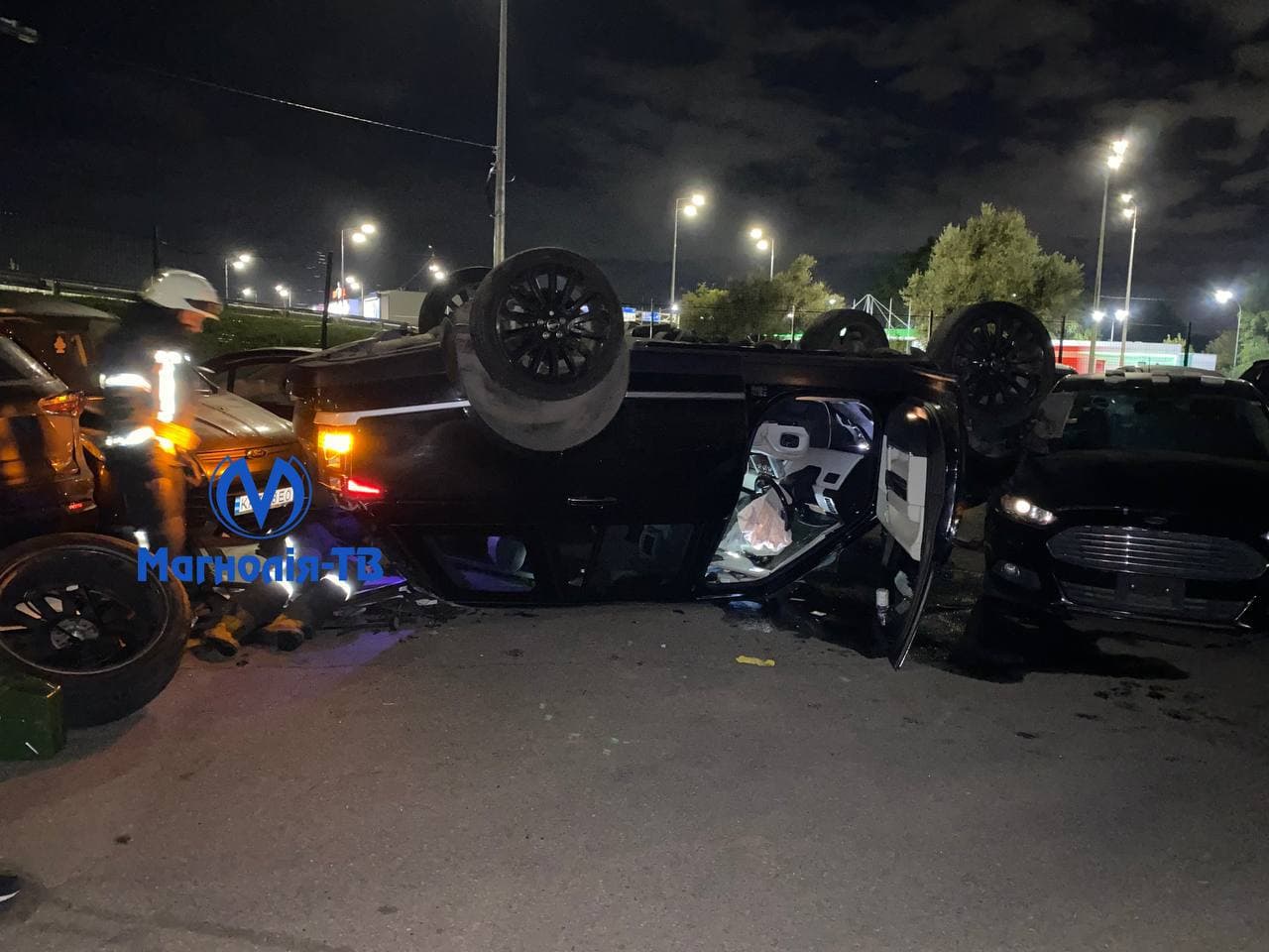 Як розповіла подруга, водійка рилася в своїй сумці і втратила контроль над авто. Машина злетіла з крутого повороту на зелену зону і врізалася в гору шин. Після чого автомобіль зніс огорожу парковки, зачепив дві припарковані машини і перекинувся на дах.