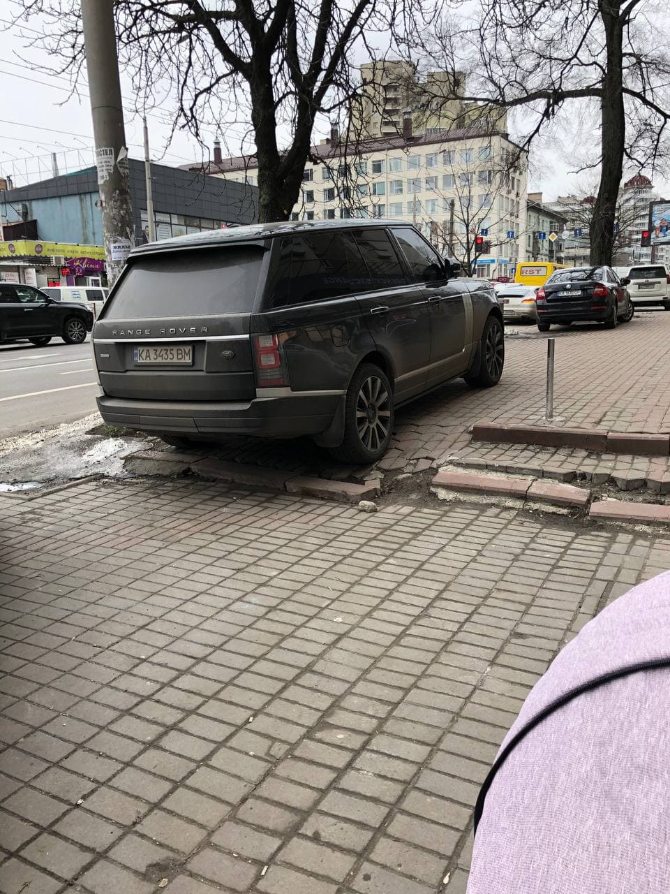 У Києві водій автомобіля Range Rover залишив свій транспортний засіб на пішохідній доріжці в місці, де передбачено пандус для проїзду людей з обмеженими можливостями та дитячих колясок.