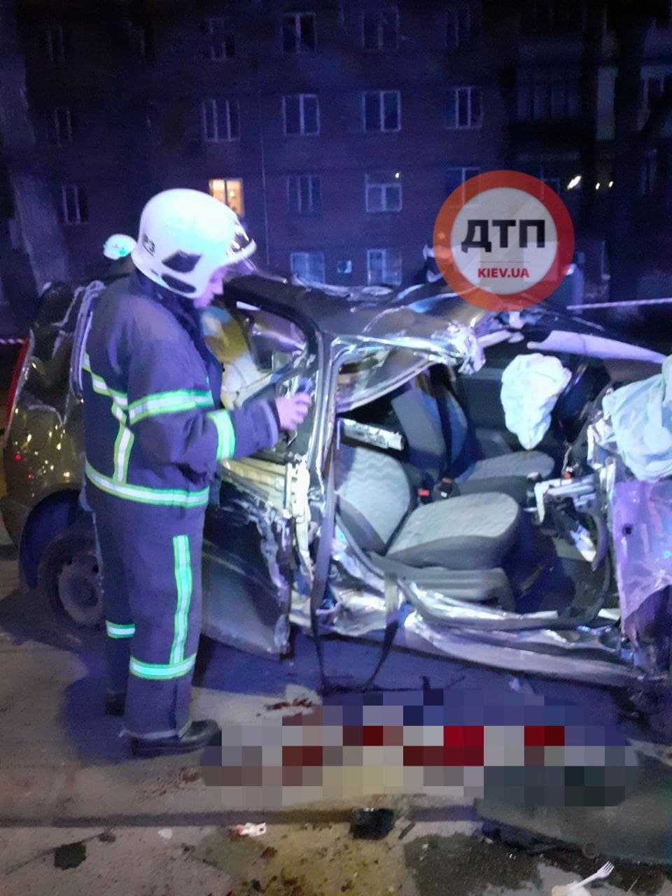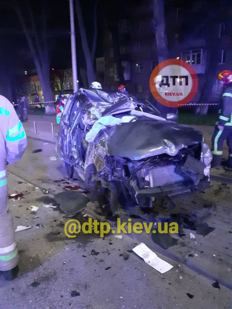 У ніч на неділю, 25 квітня, в Києві автомобіль Skoda на великій швидкості вилетів з дороги і врізався в огорожу.