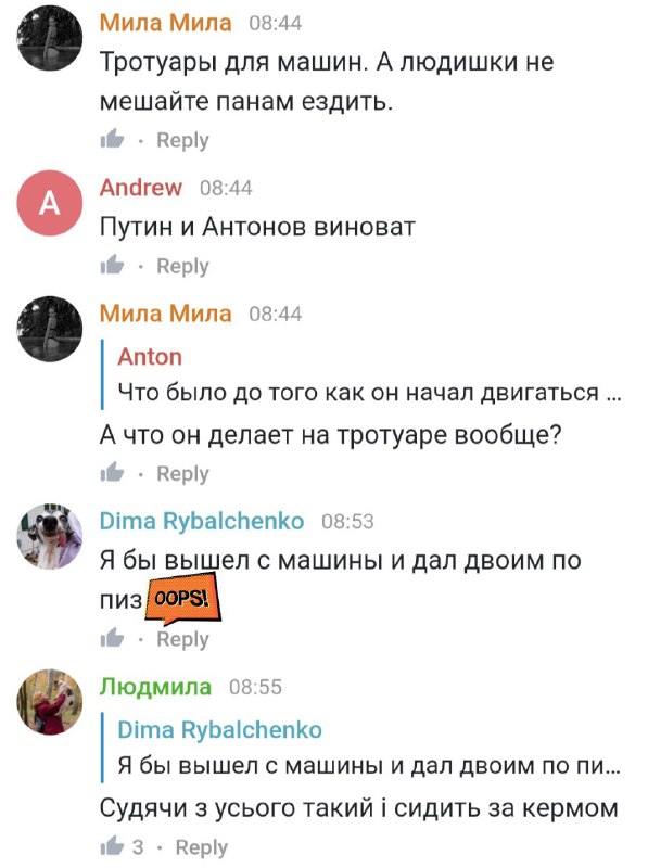 Поліція приїхала на виклик про ДТП на вул. Златовусівську в Печерському районі. За словами потерпілої, її збив автомобіль на тротуарі. Від правоохоронців вона почула: "а чого ви перед машиною стояли на тротуарі".