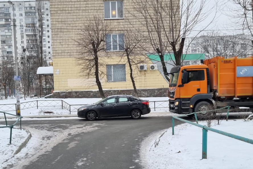 У Дніпровському районі Києва "герой парковки" заблокував вивіз сміття з двох кварталів, кинувши своє авто не перехресті.