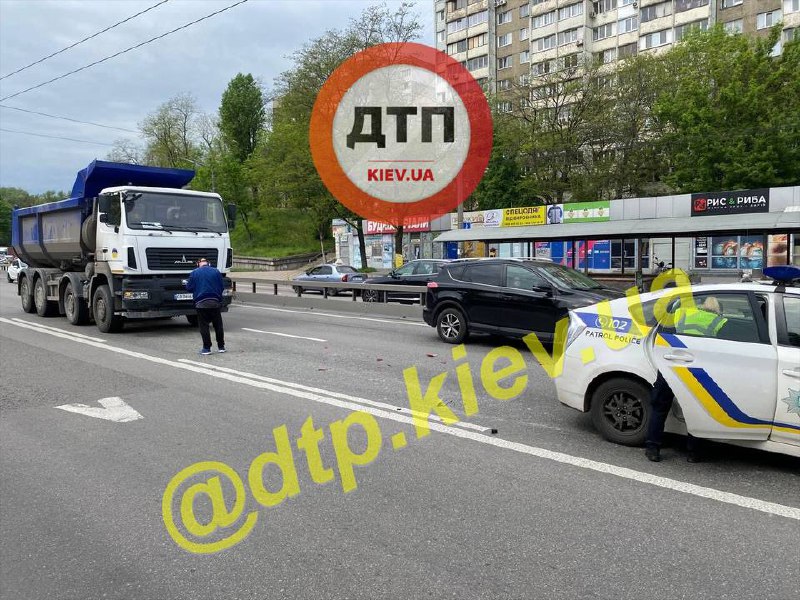 Інцидент стався на вул. Олени Теліги. За попередньою інформацією, вантажівка MAЗ наздогнала автомобіль Ford ззаду. Легковик отримав сильні пошкодження. За кермом Ford була жінка. За її словами, вона змінила ряд, щоб об'їхати автобус, і відчула сильний удар у задній частини авто.
