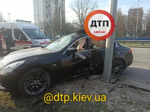 Відзначається, що водій на елітній Infiniti їхав під 150 км / год і на повному ходу боком залетів в стовп.
