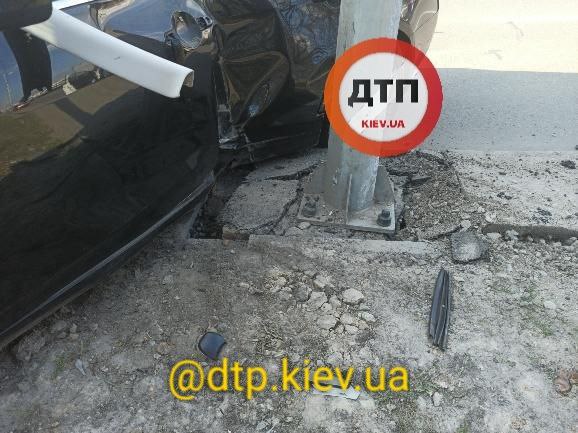 Нагадаємо, в ніч на 31 березня в Києві на проспекті Правди водій автомобіля Volkswagen Passat в стані алкогольного сп'яніння врізався в стовп. П'яний водій не побачив острівець безпеки, обладнаний світловідбивачами і дорожніми знаками, і влетів в нього. Трохи підлетів на острівці, втративши деякі деталі, і далі вже некероване авто врізалося в стовп.