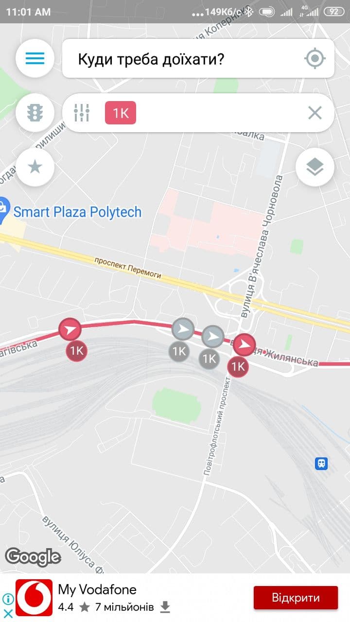В результаті рух трамваїв за маршрутом 1 і 3 паралізовано - люди виходять з трамваїв і йдуть на площу Перемоги пішки.