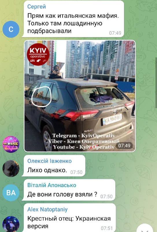 У Дніпровському районі Києва на дах авто поклали відрубляну коров'ячу голову. Скло в машині побили, колеса проколоті.