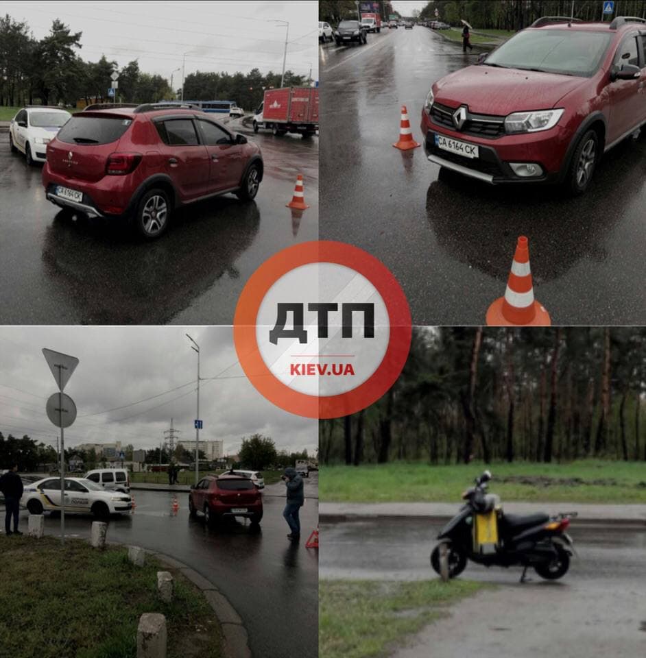 "Кур'єр доставки Glovo, порушуючи правила дорожнього руху, врізався в Renault, після чого намагався втекти з місця події. Пасажир автомобіля і випадкові свідки затримали пілота двоколісного до приїзду поліції. Оформляється ДТП", - йдеться в повідомленні.
