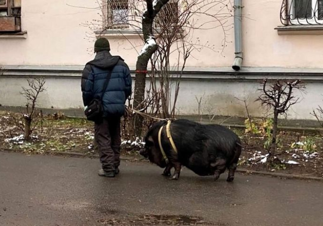 На вулицях Києва помітили чоловіка, який вигулював свиню на повідку. У Мережі відрегували низкою гострих та жорстоких жартів.