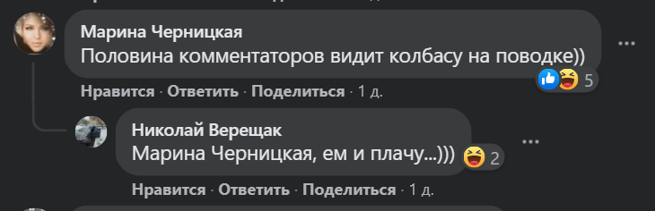 Кияни у соцмережах бурхливо відреагували на світлину. Зокрема, жартують про "ковбасу на повідку", яка "пережила Різдво", а також про відсутність намордника у тварини.