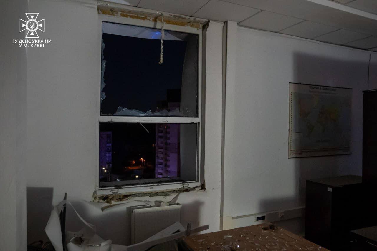 Так, повідомляється, що у Солом"янському районі столиці пошкоджений фасад адмінбудівлі з 9 по 11 поверх. Постраждалих немає.