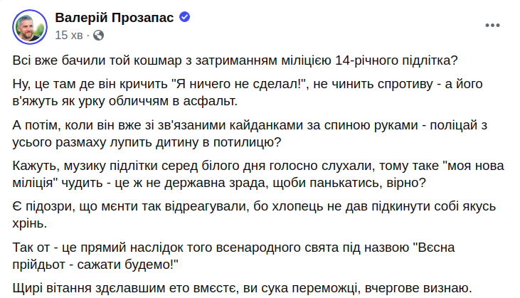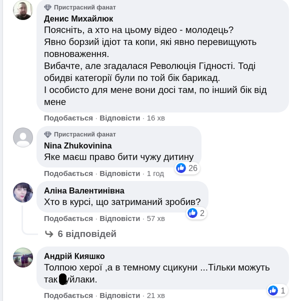Пізніше в мережі з'явилося повне відео, на якому видно, як поліцейський щось підкидає хлопцю.