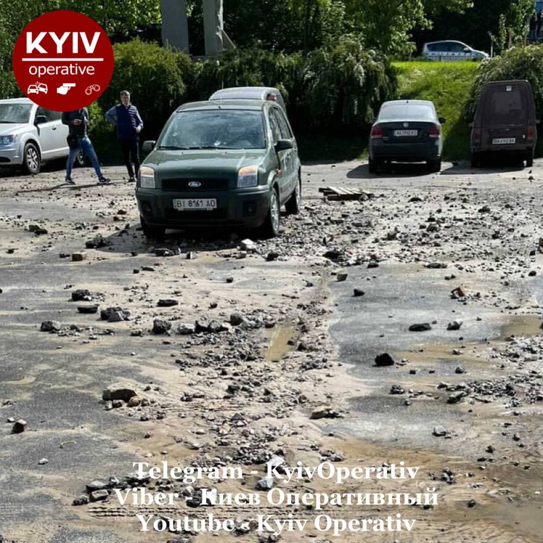 У четвер, 20 травня, в Києві стався прорив магістралі теплопостачання - з-під землі забив потужний гейзер води. Внаслідок аварії було пошкоджено десятки автомобілів.