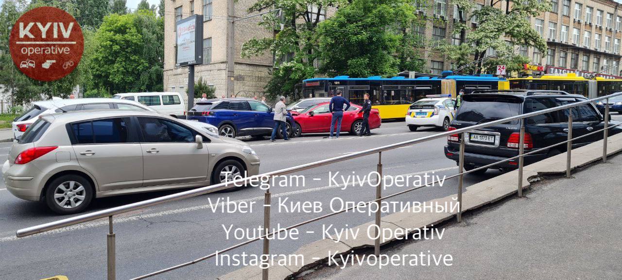 У понеділок, 7 червня, в центрі Києва сталася ДТП за участю двох легковиків. Між ст. м. "Шулявська" і Індустріальним мостом утворився затор.