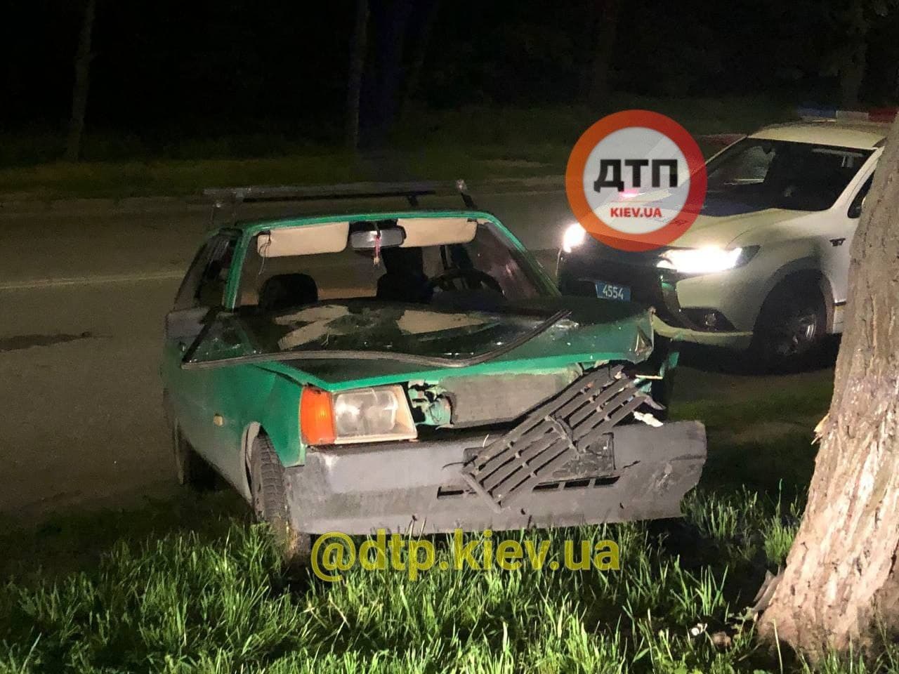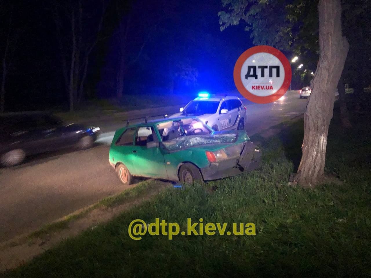 У ніч на неділю, 23 травня, в Києві п'яний водій на швидкості влетів у дерево, в результаті чого отримав серйозні травми, також постраждав пасажир машини.