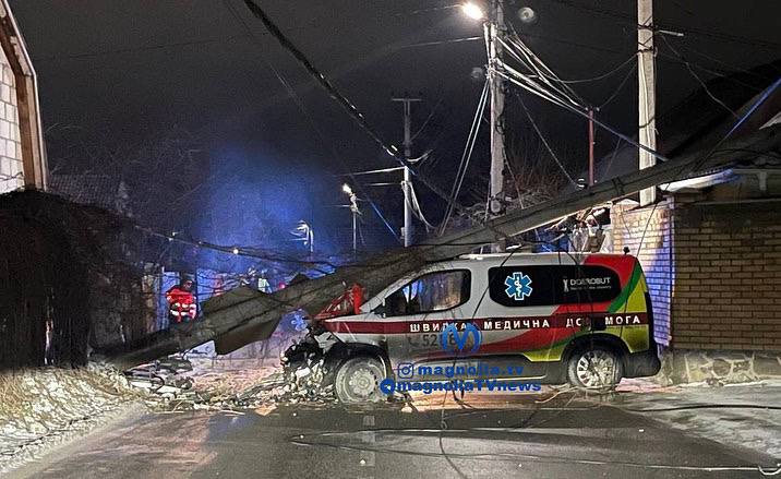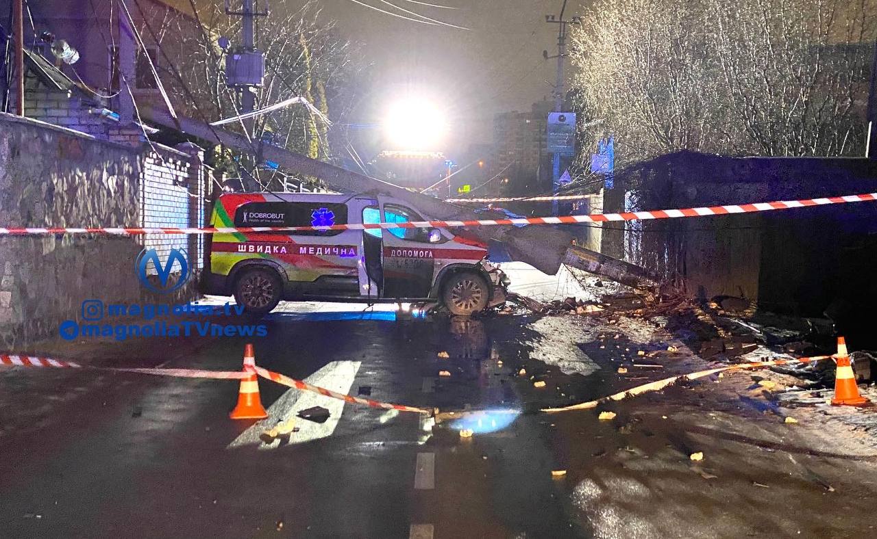 У ніч на середу, 29 грудня, на Софіївський Борщагівці в Києві "швидка" врізалась в електроопору та повалила на себе стовб.