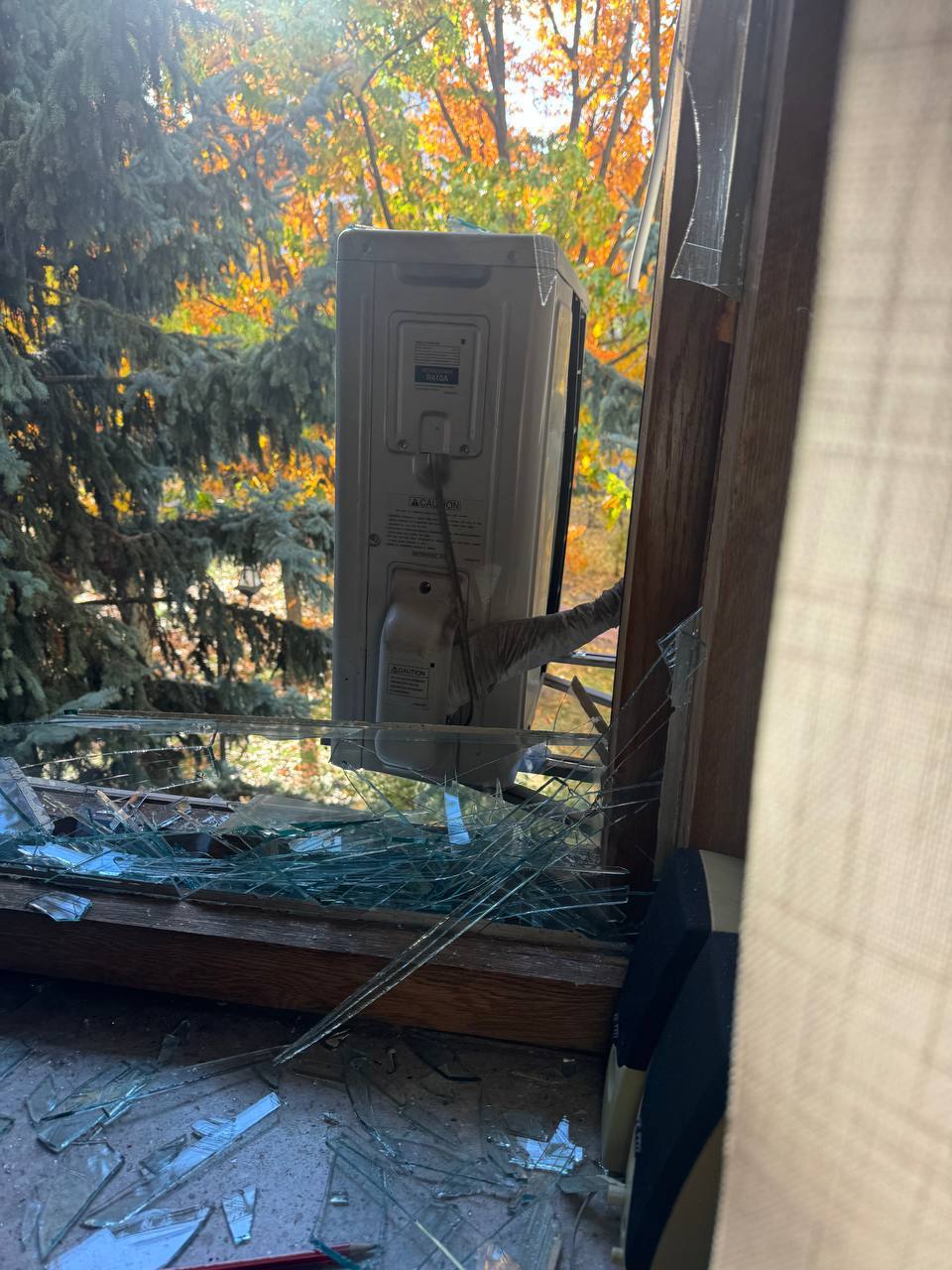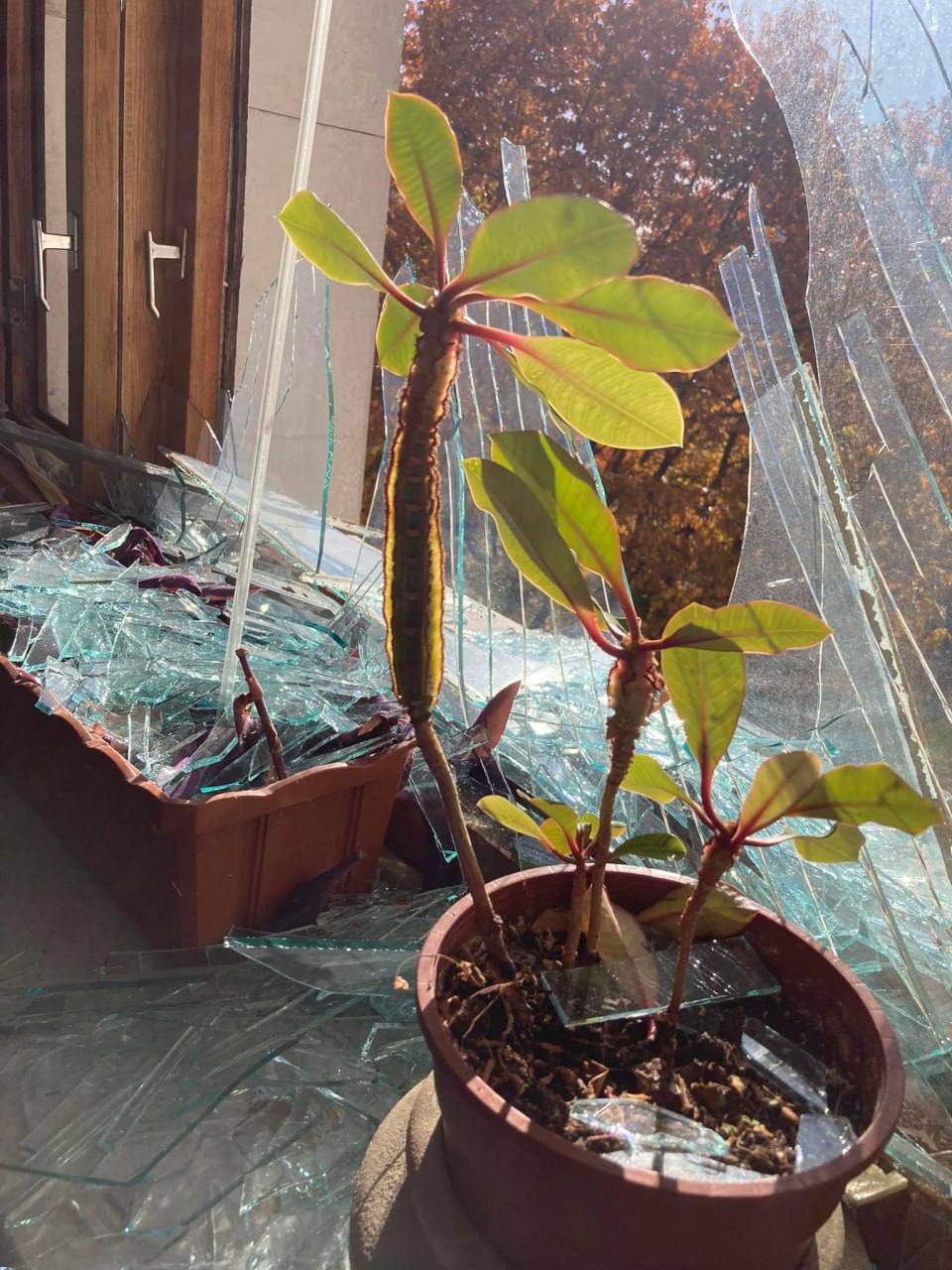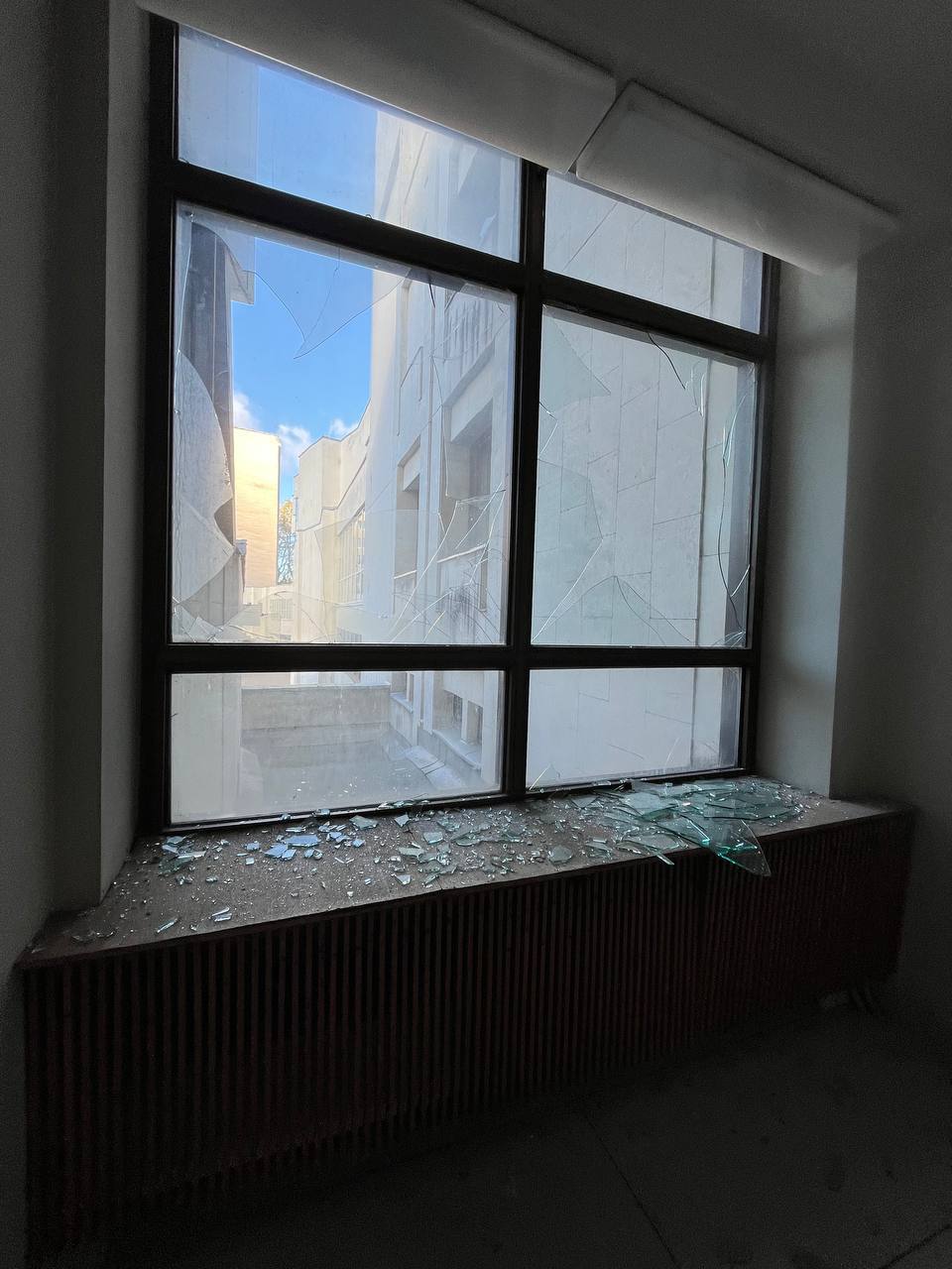 Після нічної атаки пошкоджено вікна по всьому периметру Навчально-наукового інституту журналістики КНУ імені Тараса Шевченка - немає жодного поверху, де не було б розбитого скла.