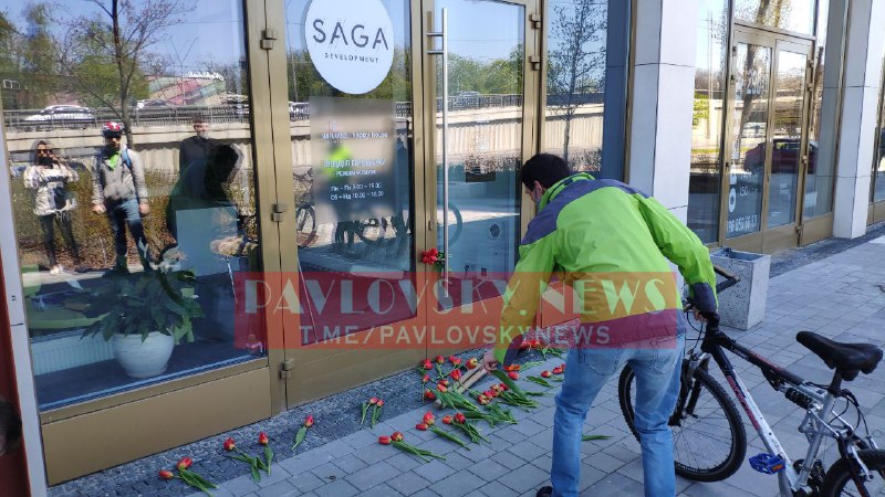 Також вони поклали тюльпани біля офісу забудовника житлового комплексу, щоб "пом'янути його репутацію".