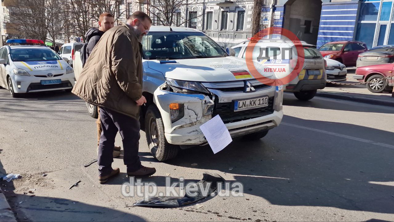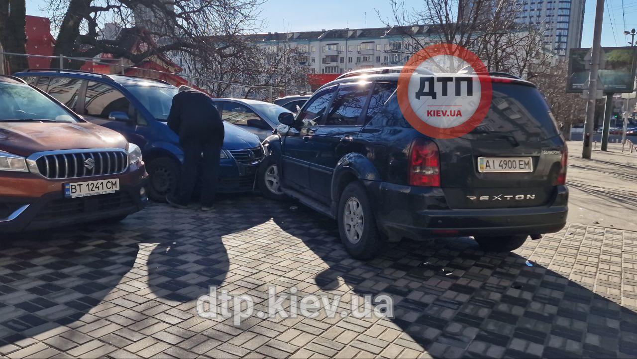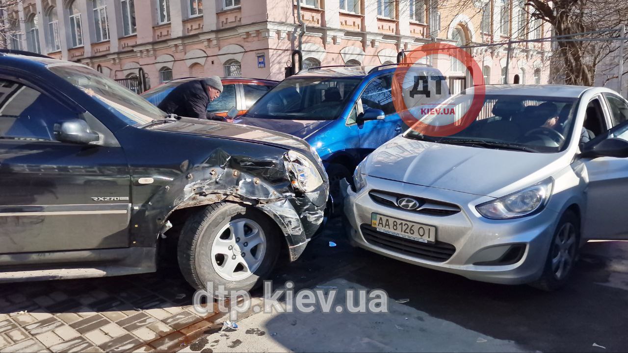 Це сталося на спуску Євгена Коновальця - водій врізався в автомобіль Volkswagen сервісу таксі Uber, а також в авто Mitsubishi і вилетів на тротуар, де зіткнувся з Hyundai та ще одним Volkswagen.