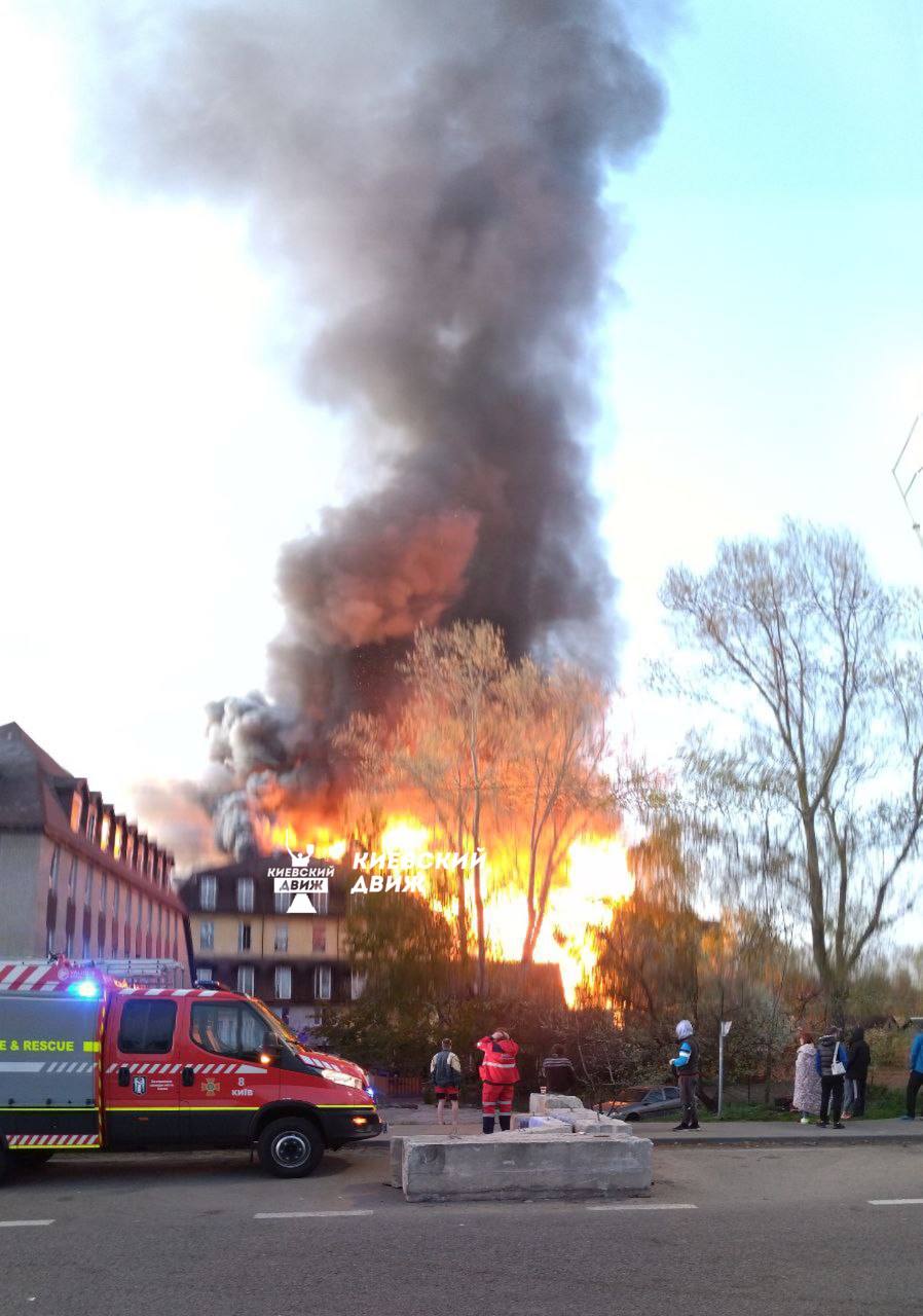 Близько 5 ранку п'ятниці, 6 травня, у Голосіївському районі Києва сталася масштабна пожежа. За попередньою інформацією, її причина – не "приліт".