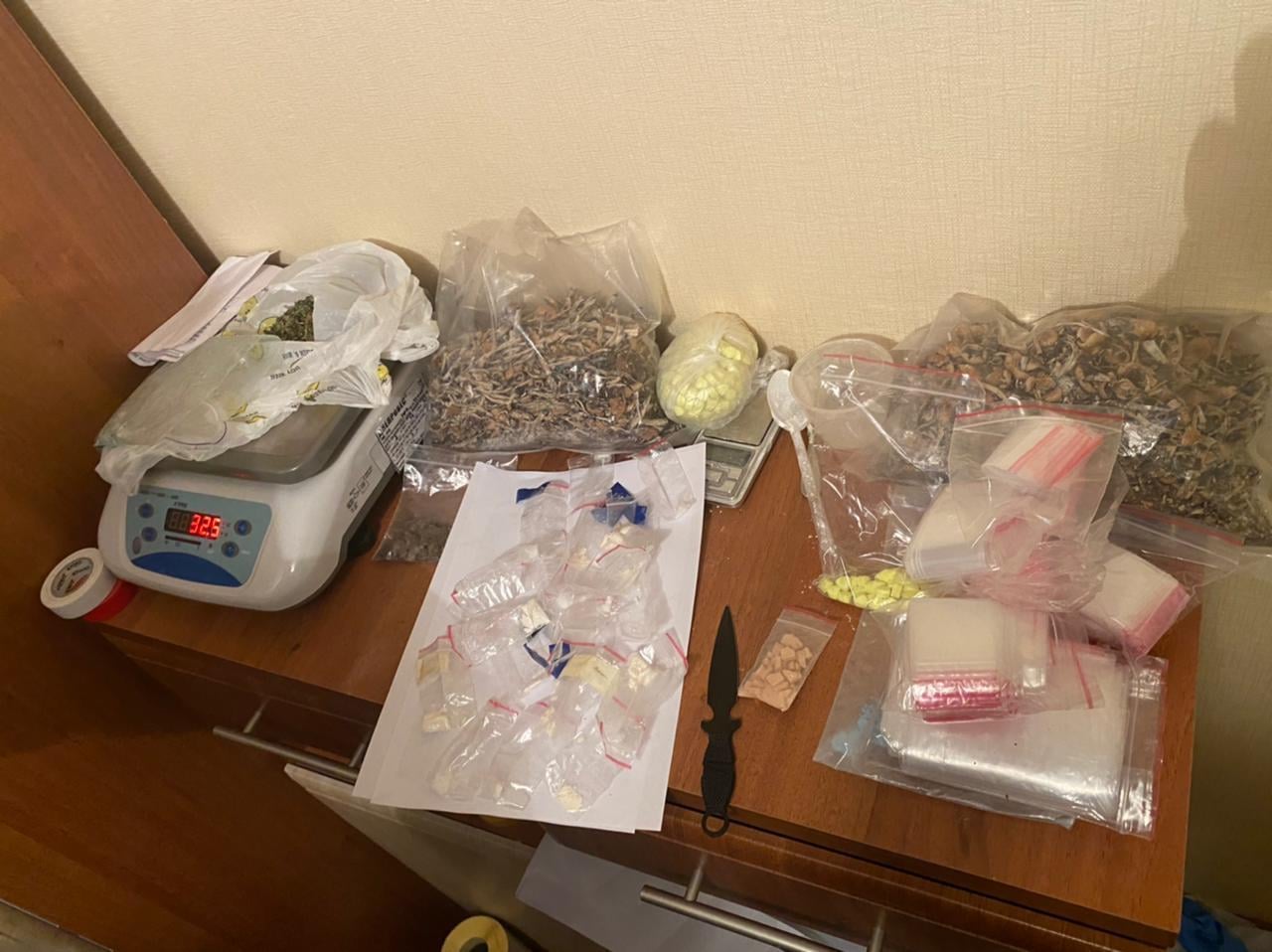 Хлопця затримали з великою кількістю наркотичних засобів, які він збирався продати. У його орендованій квартирі пройшли обшуки, під час яких вилучили: близько 4 кг заборонених засобів і речовин, в тому числі амфетамін, солі, мефедрон, марки, екстазі. Також у нього знайшли психотропні гриби - в шоколадних цукерках і в чистому вигляді.