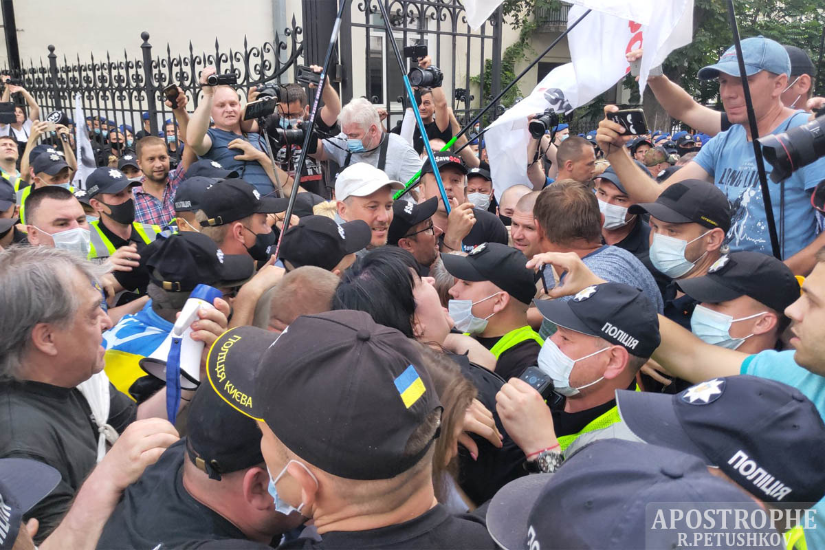 Нагадаємо, підприємці планували пройти маршем із труною і ритуальними вінками до Офісу президента, символізуючи тим самим похорон малого бізнесу. Поліція заблокувала їм шлях. Почалися сутички.