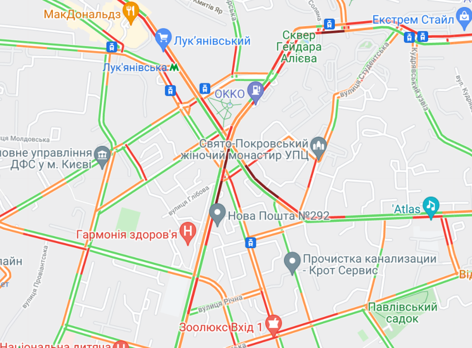 Зранку біля станції метро "Лук'янівська" утворився великий затор з трамваїв через технічні несправності.