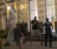 За словами очевидців, сталася сутичка між п'яним чоловіком і поліцейськими. Судячи з відеозапису, молодий хлопець поводився агресивно, став у "стійку" і почав махати кулаками перед правоохоронцями, а ті, в свою чергу, оточили його і намагалися втихомирити.