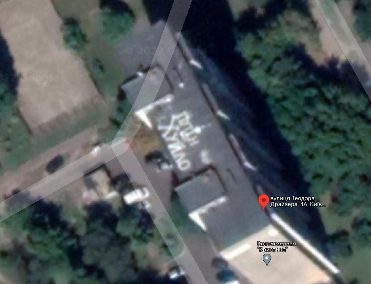 Якщо відкрити супутниковий знімок Google-карт на вул. Теодора Драйзера, 4А, на даху будівлі можна спостерігати відомий в Україні вираз "Путін ху*ло". Незрозуміло, чи справді там є цей напис, однак супутник його зафіксував.