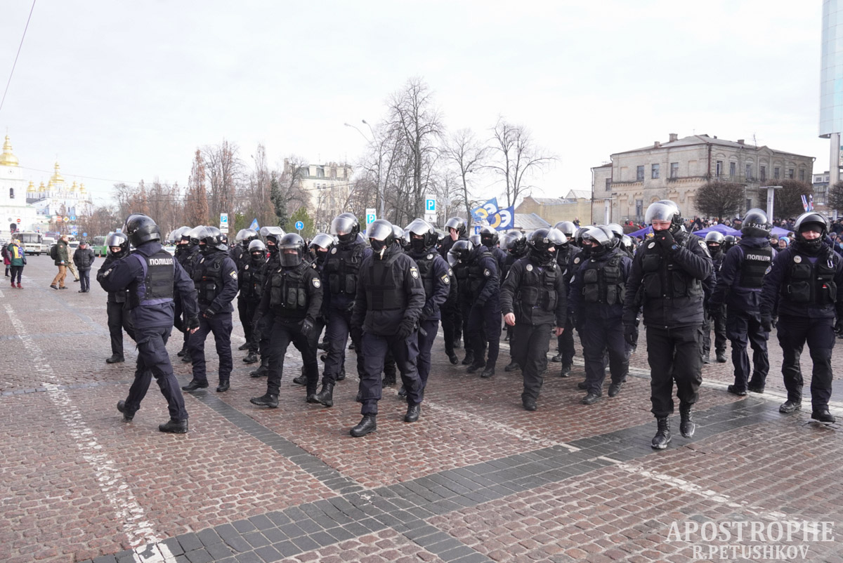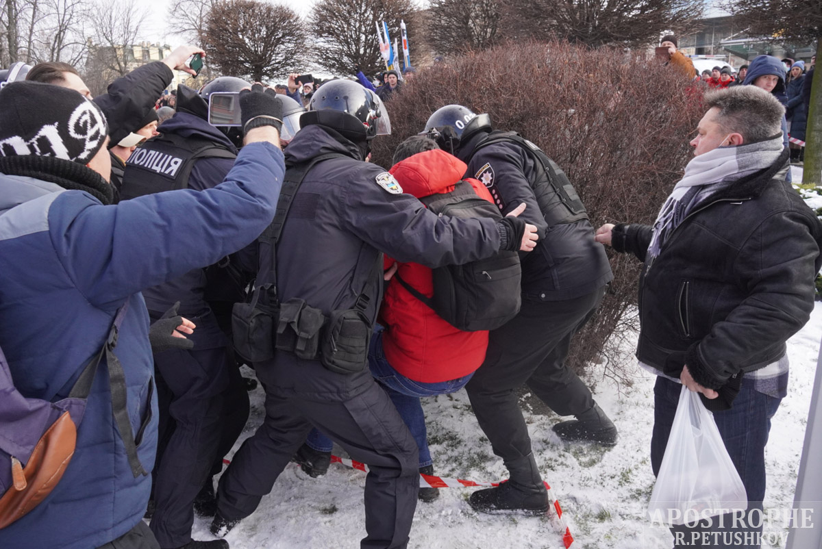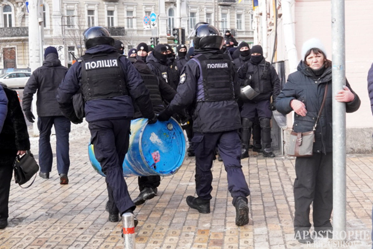 Близько 12:30 правоохоронці забрали бочки та намети, які принесли активісти, а також використали сльозогінний газ. А ктивісти намагалися розпалити вогонь у встановлених біля будівлі суду залізних бочках. Поліція та Нацгвардія відтісняли їх, внаслідок чого виникла масова бійка.