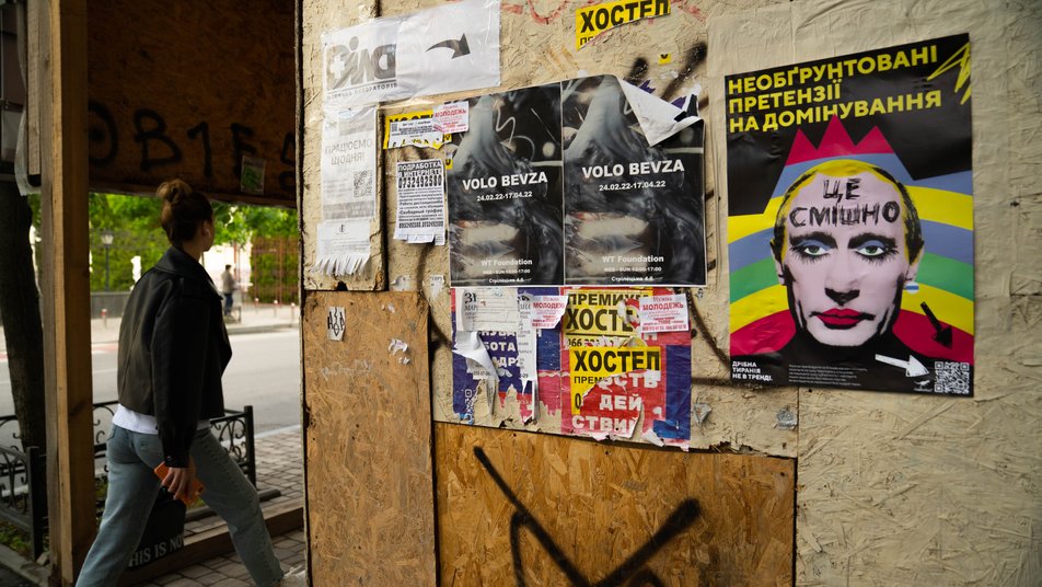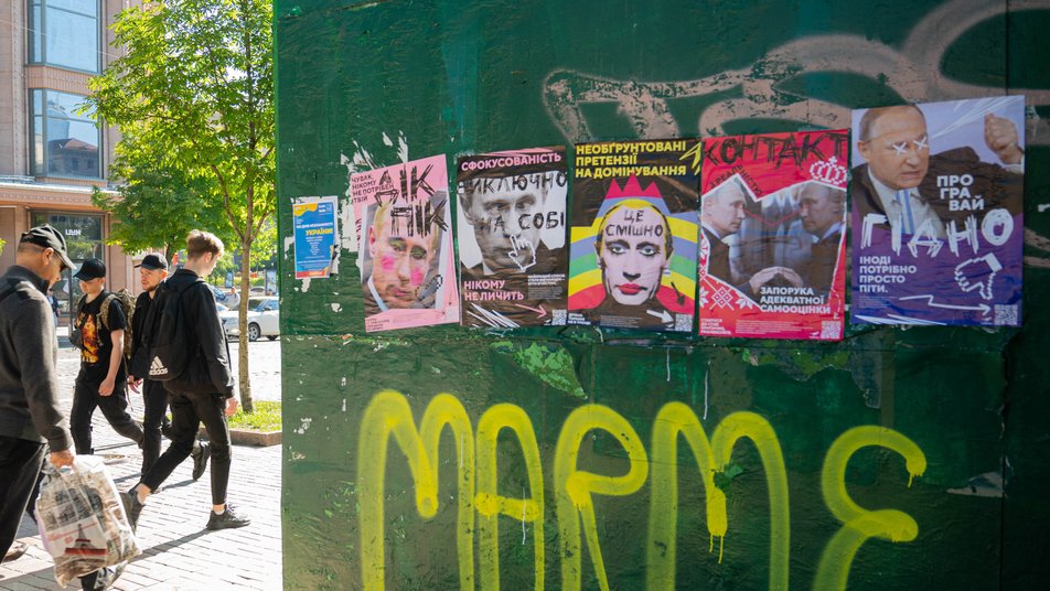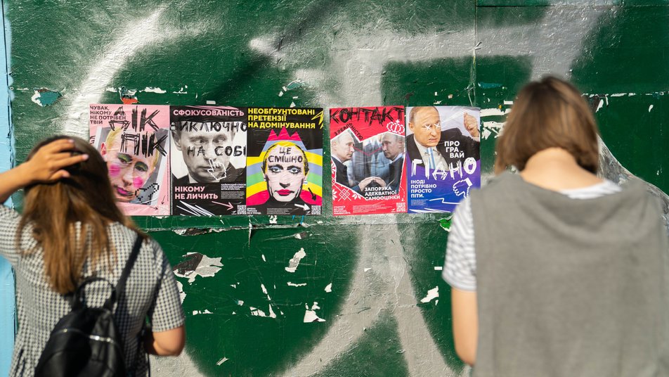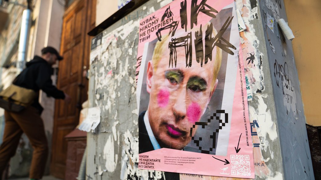 На вулицях Києва почали з'являтися плакати з Путіним, де він зображений із вульгарним макіяжем, а під фото – підписи, що висміюють російського диктатора.