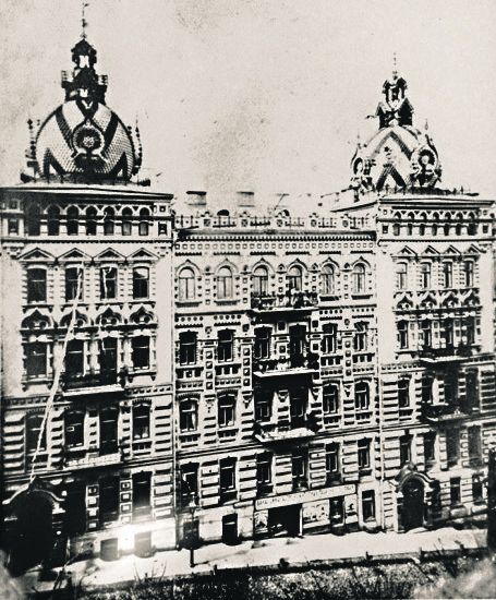 Вже у 1900-1901 роках було збудовано п'ятиповерховий прибутковий будинок, який через свої незвичайні архітектурні форми отримав назву "Будинок-терем". Автором проєкту виступив архітектор М. А. Вишневський.