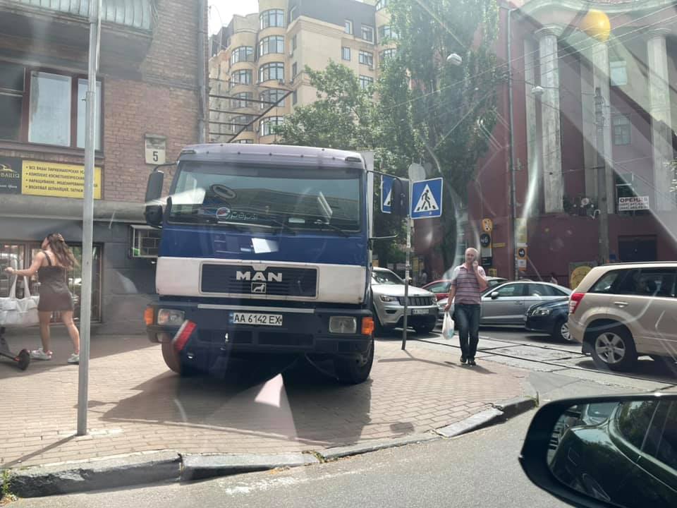 У Києві на фото потрапила вантажівка, яку примудрилися припаркувати на перехресті.