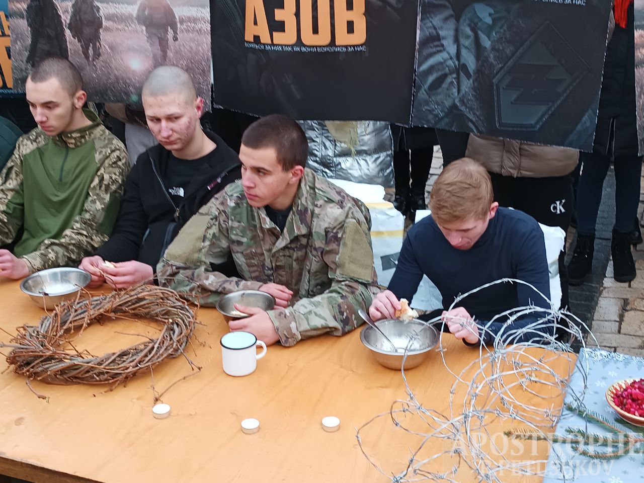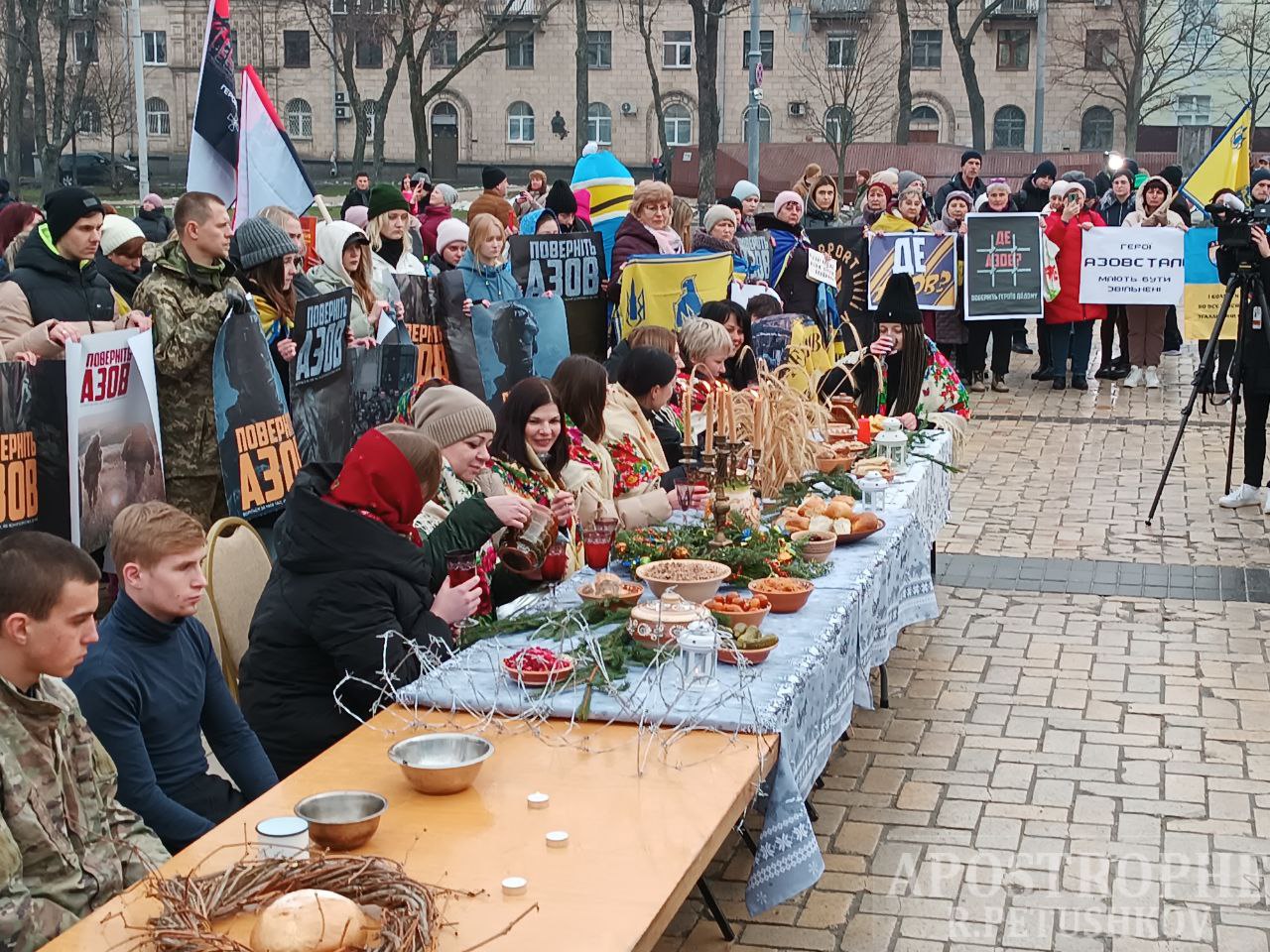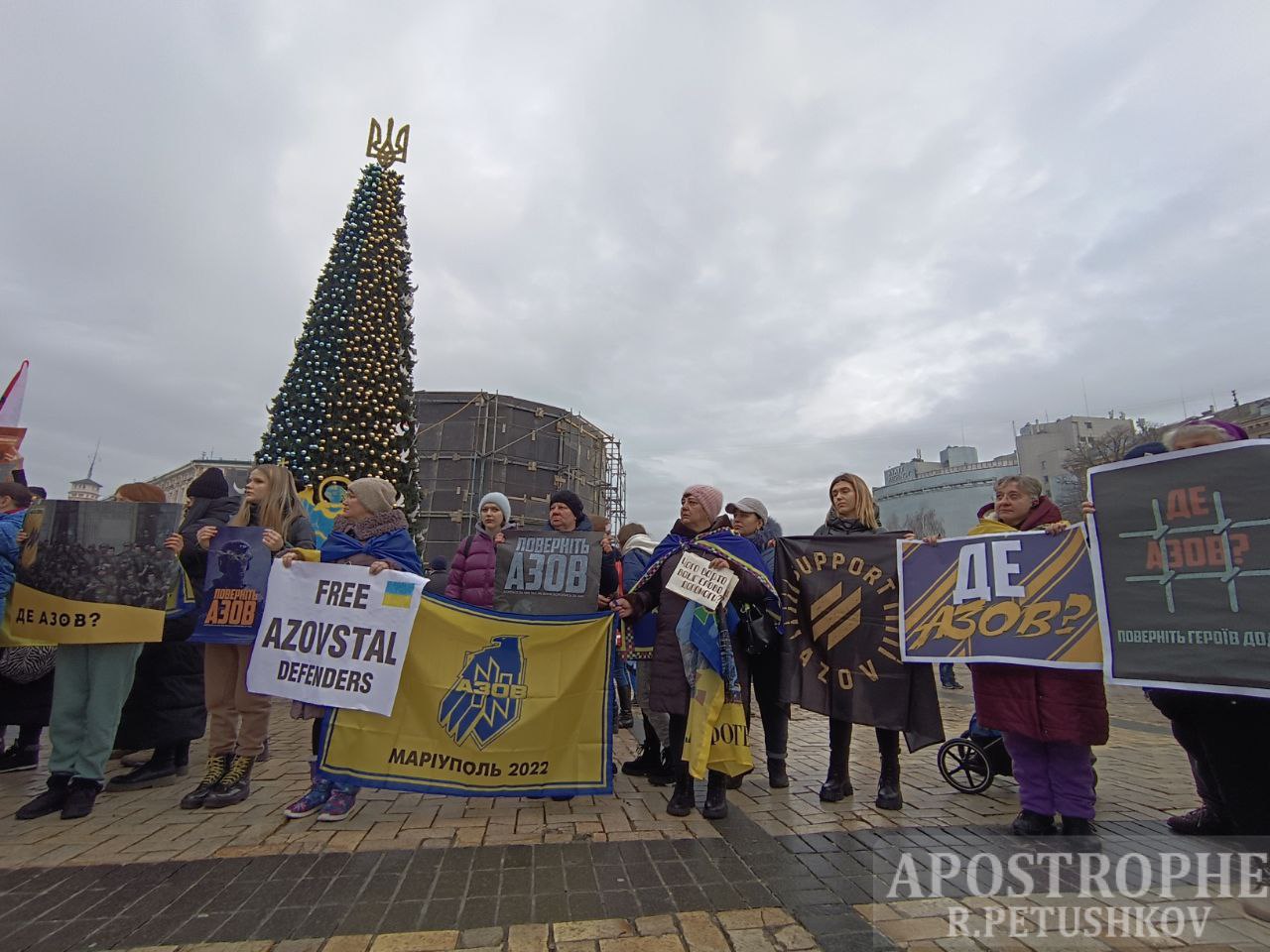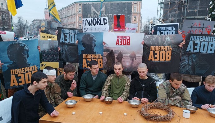 У суботу, 24 грудня, родини полонених бійців з полку "Азов" провели у Києві акцію, влаштувавши перформанс "Полк АЗОВ: Різдво в полоні". Вони просять помолитися за "азовців" всіх українців, які святкуватимуть Різдво на цих вихідних.