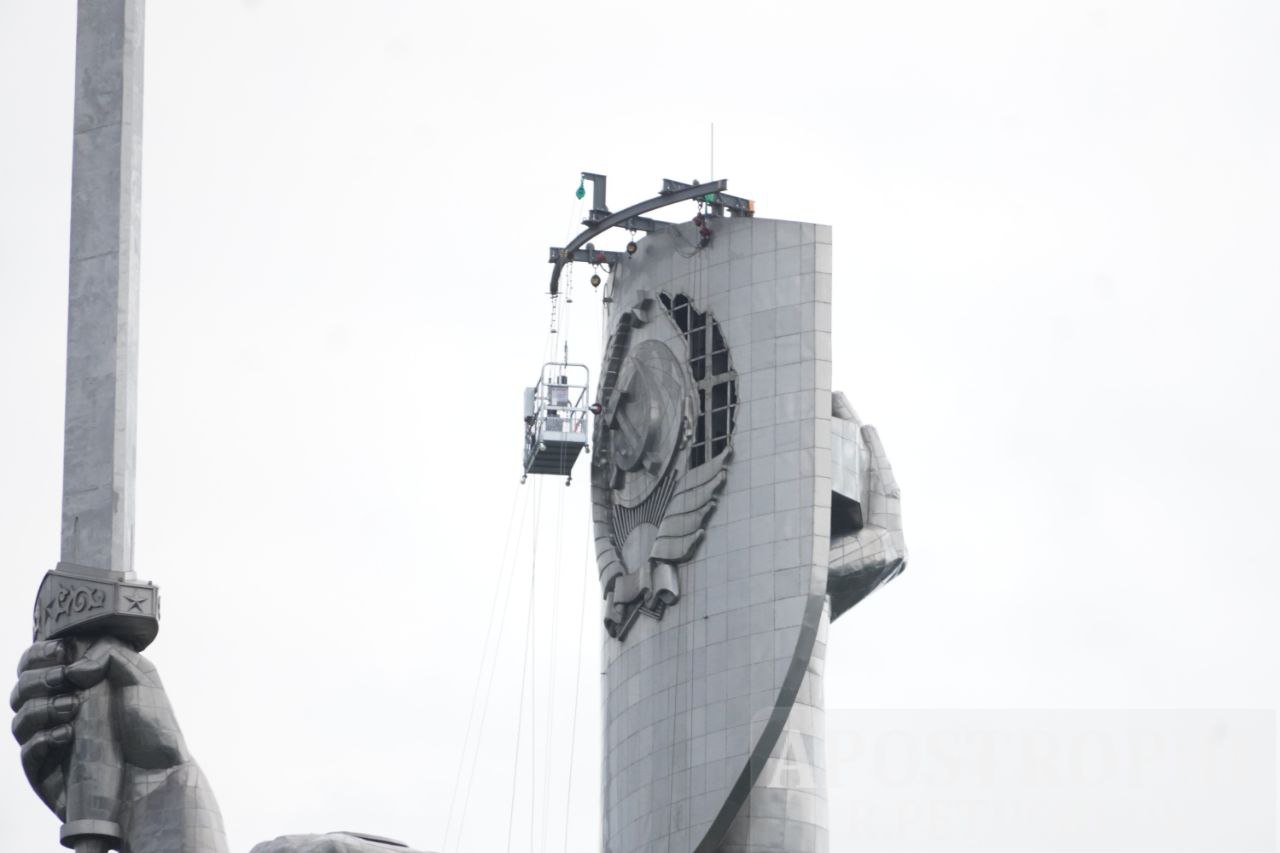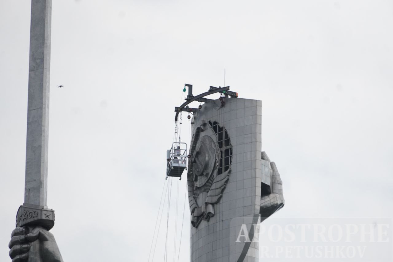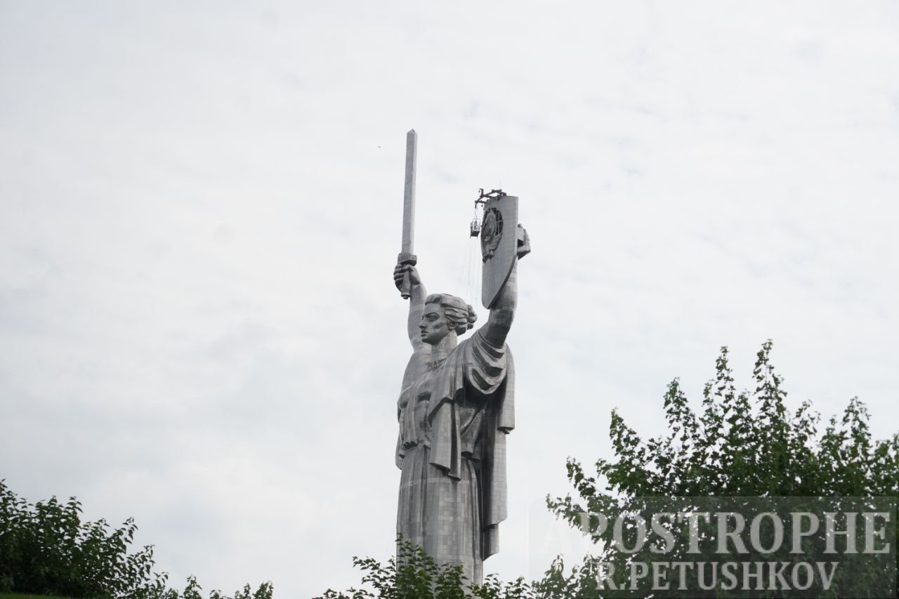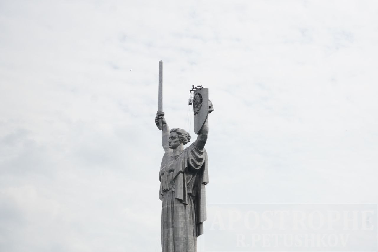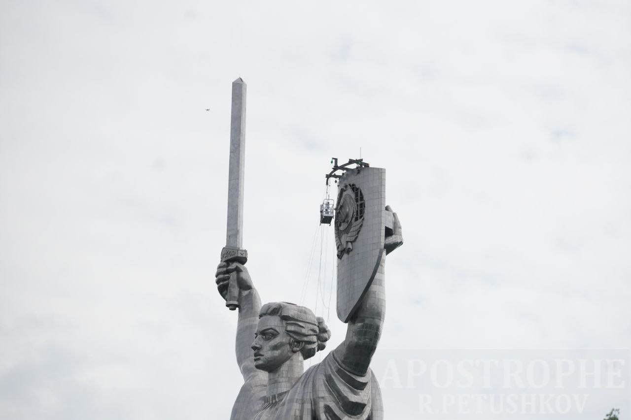 У неділю, 30 липня, у Києві розпочали демонтаж герба СРСР з монумента "Батьківщина-мати" .