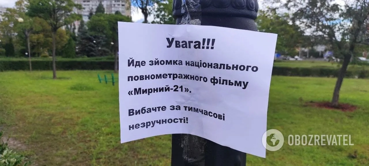 Поруч з імпровізованим майданчиком знаходиться знімальна група. Вона закликає киян не турбуватися від побаченого.