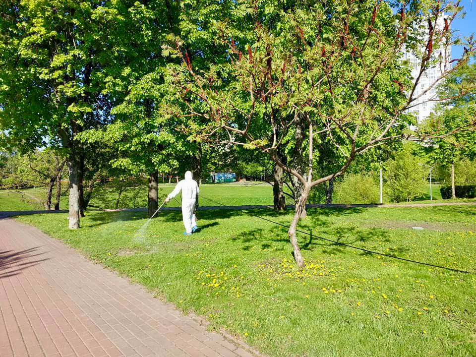 З огляду на те, що на цьому тижні погода принесла в столицю суху погоду та помірне тепло до 24-27 градусів, кліщі починають активніше "діяти" – тому в парках і скверах все активніше проводять акарицидну обробку, після якої місцевим мешканцям певний час радять не прогулюватись цими зонами та не вигулювати в парках домашніх улюбленців. Проведені акарицидні обробки огороджують сигнальною стрічкою.