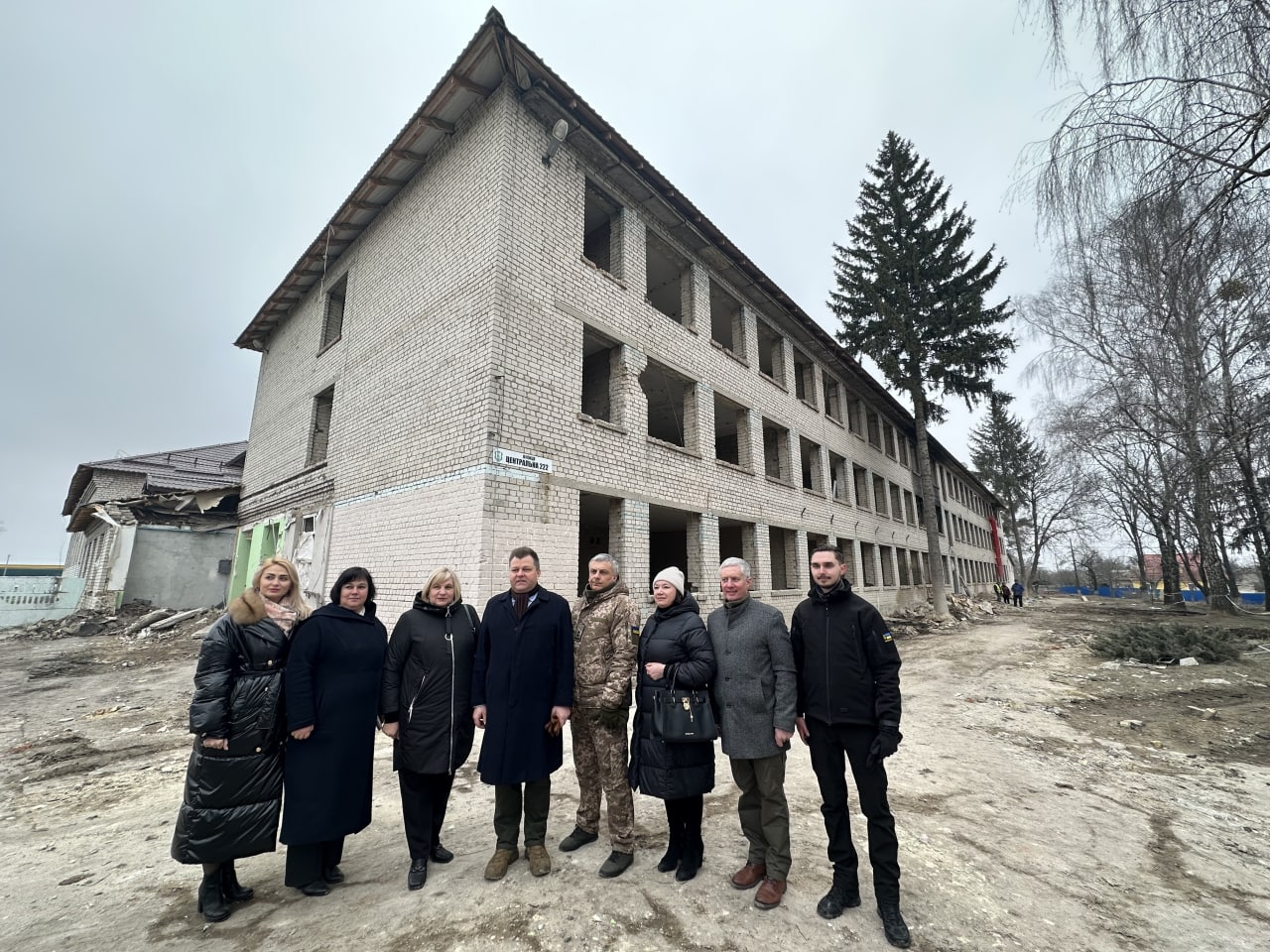 У рамках робочої поїздки віцеміністр Міністерства закордонних справ Литви Мантас Адоменаіс, заступниця Міністра освіти і науки Віра Рогова, заступниця голови Київської ОВА Жанна Осипенко провели ознайомлення з процесом відновлення закладів.