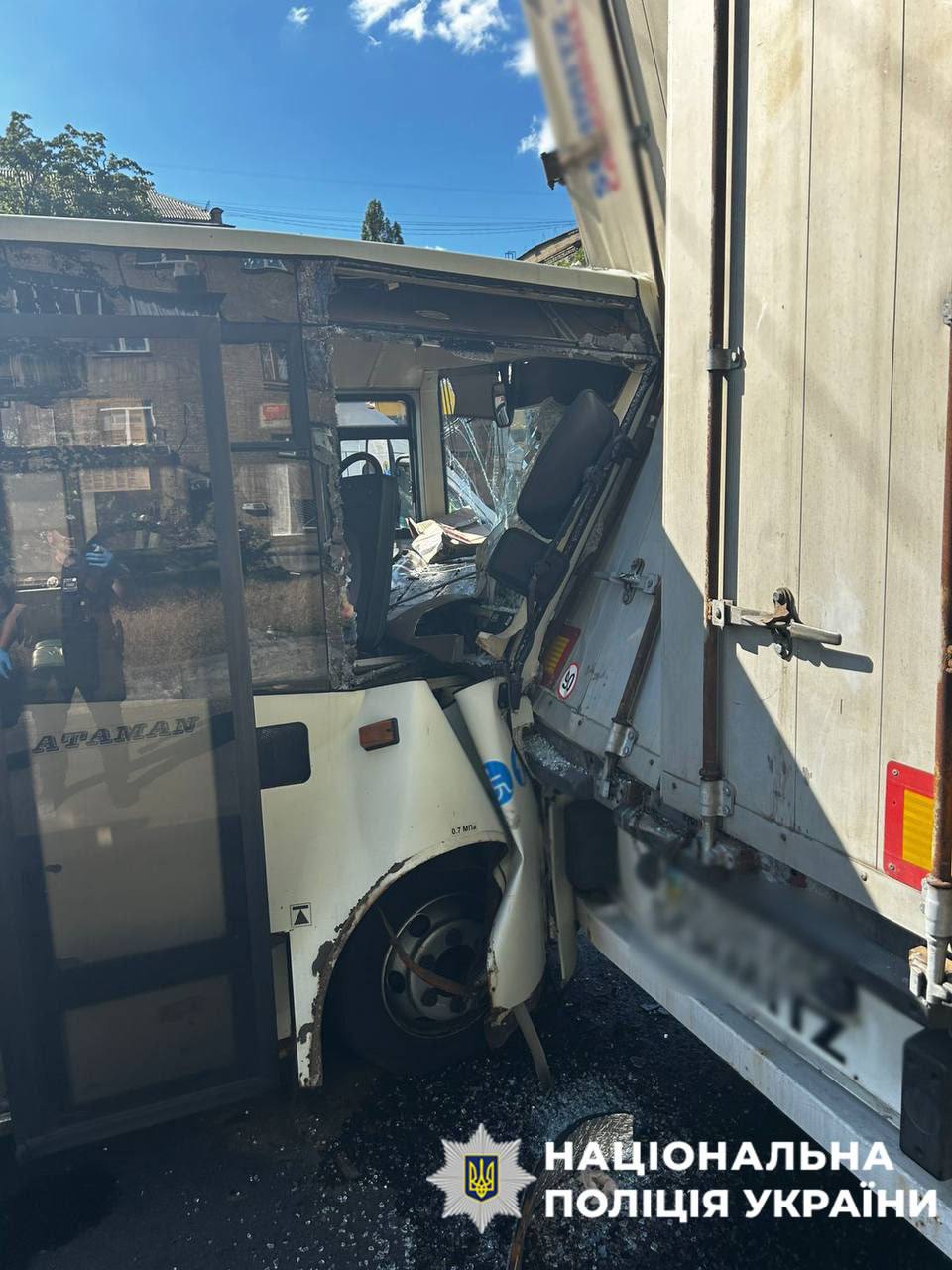 У Києві 11 липня сталася дорожньо-транспортна пригода за участі маршрутного таксі та припаркованої вантажівки.