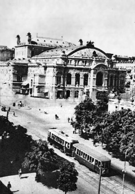 Перше фото переносить спостерігачів у 1930-ті роки, вже тоді вдалося зафіксувати міські трамваї, котрі проїжджали поряд з Оперним театром.