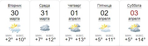 Синоптики прогнозують, що вже в суботу, 27 березня, температура повітря вдень в Києві прогріється до +10 градусів. У наступні дні потеплішає ще істотніше - в перші дні квітня стовпчики термометрів піднімуться до позначки +13 ... + 14 градусів. Вночі буде дещо прохолодніше - +4 .. + 5 градусів.