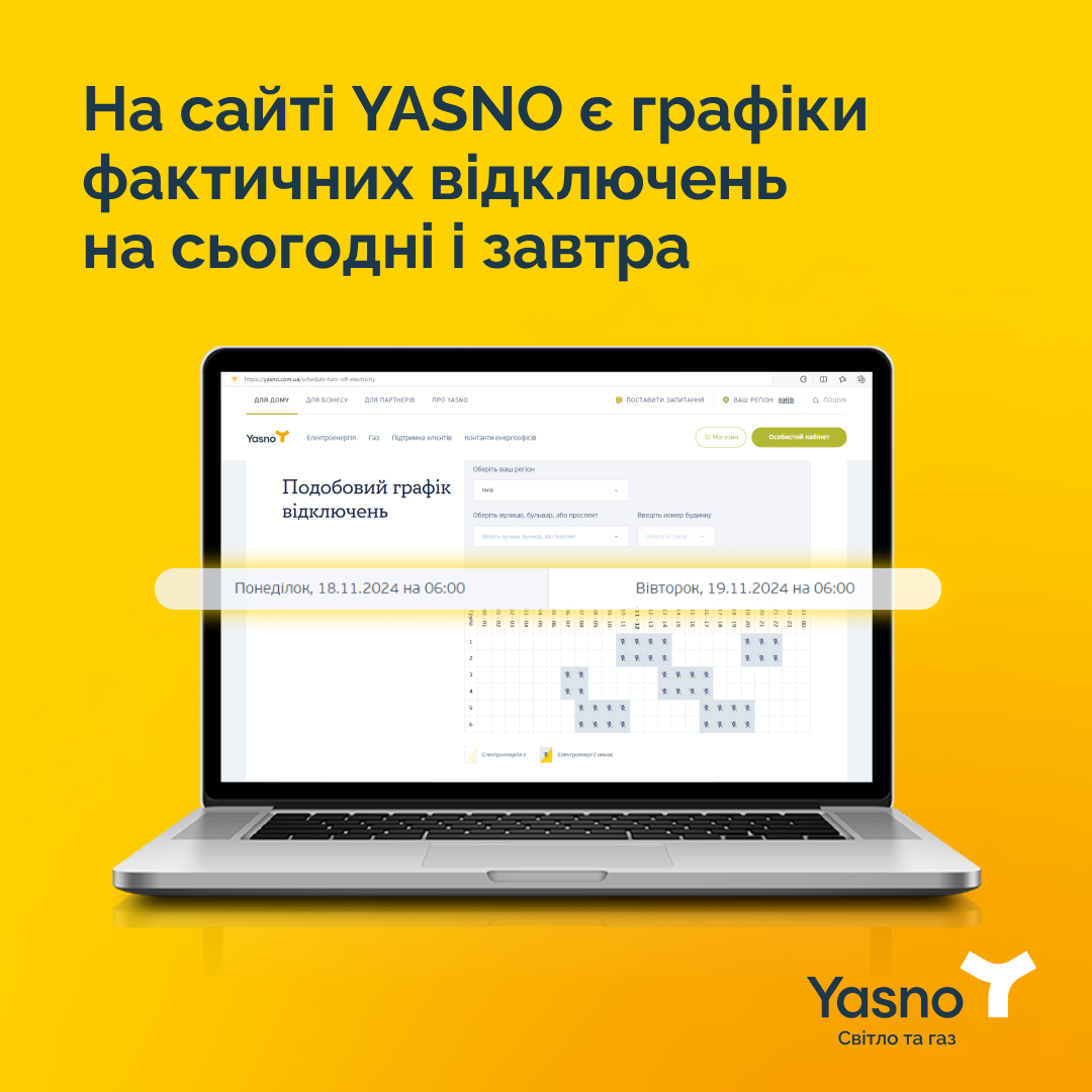 Про це повідомила пресслужба енергетичної компанії Yasno у соцмережі Facebook.