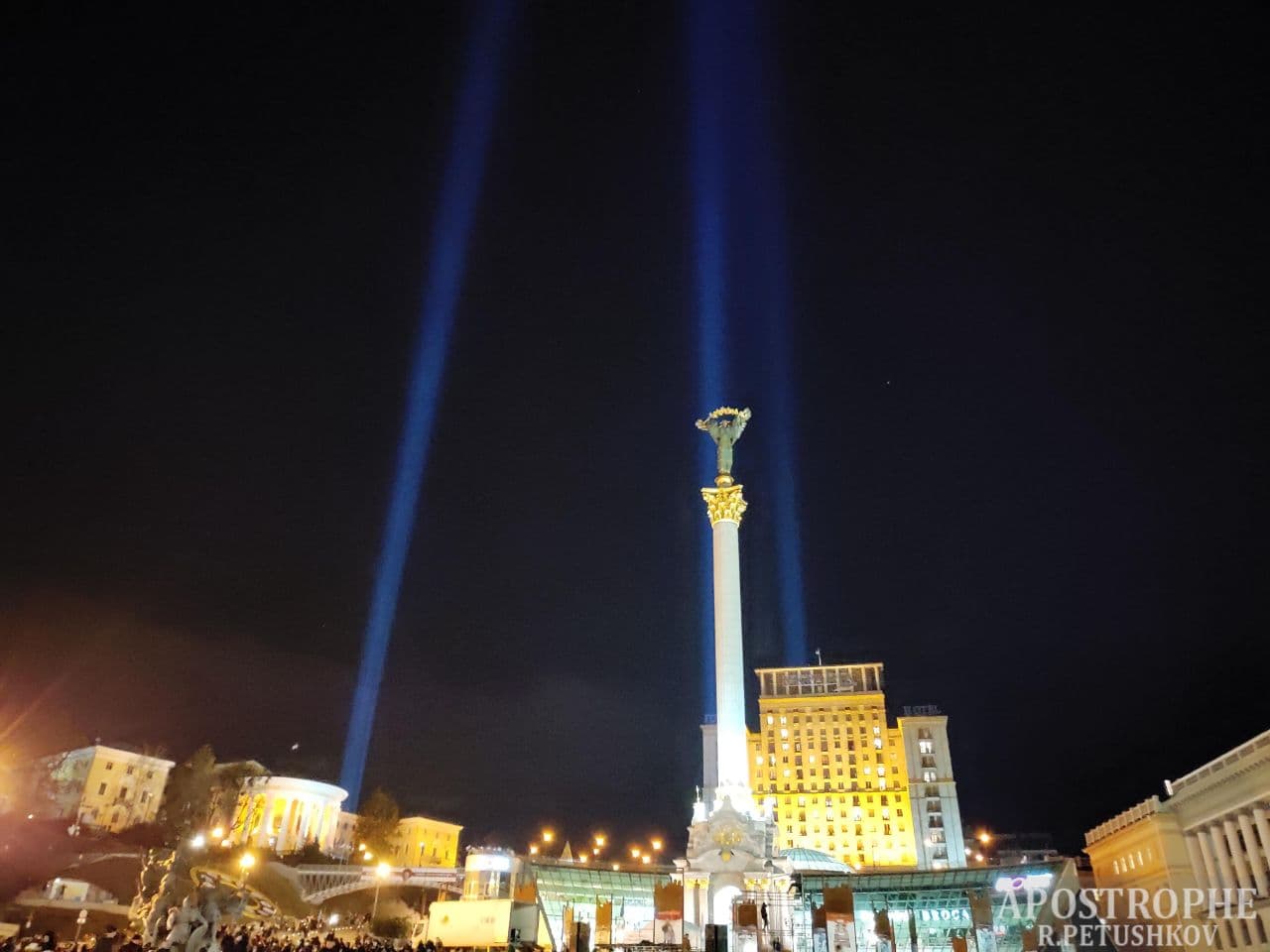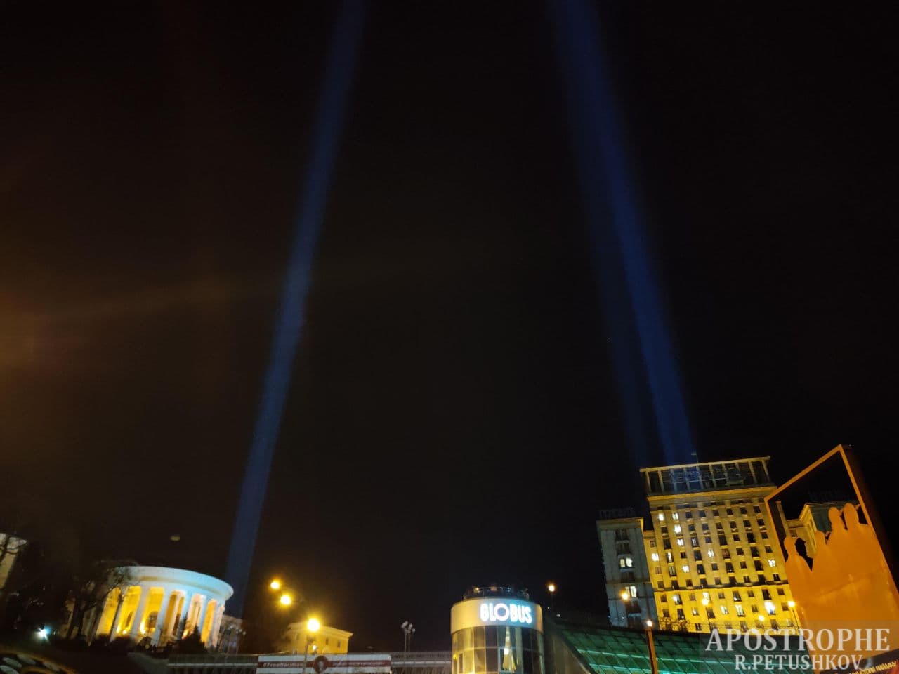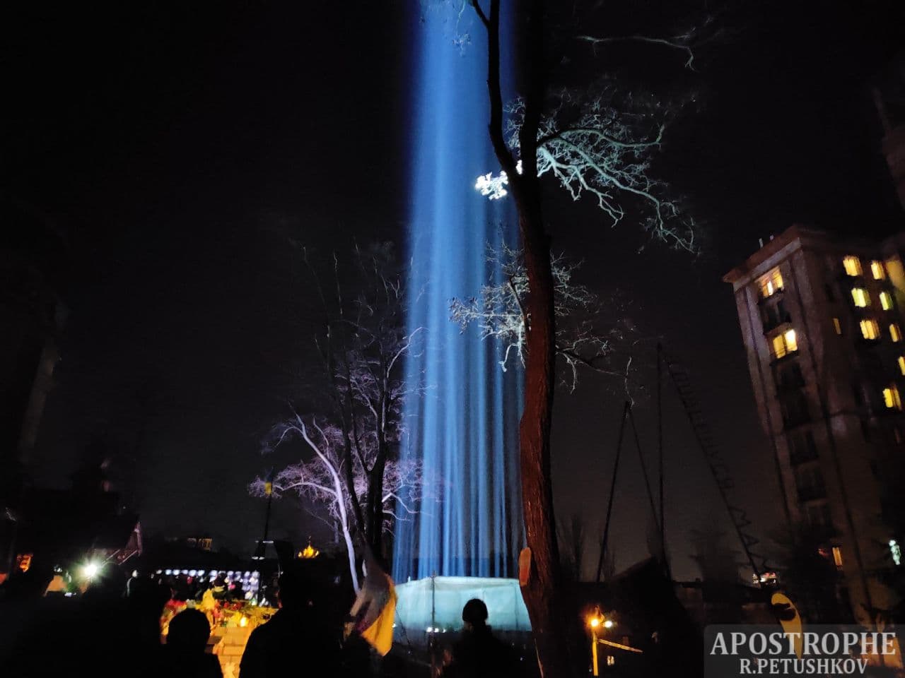 Потім на алеї Героїв Небесної Сотні відбулося вмикання світлової інсталяції "Промені гідності" з аудіосупроводом музики Романа Коляди.