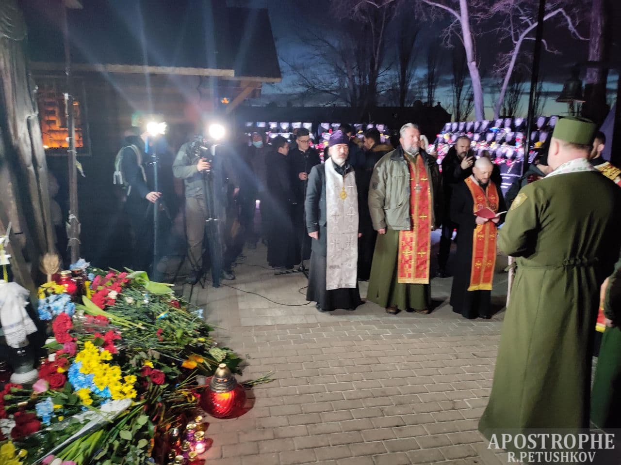 А на алеї Героїв Небесної Сотні та біля екуменічного храму Архістратига Михайла та Українських Новомучеників – розпочалася міжконфесійна панахида за Героями Небесної Сотні та запалення лампадок.