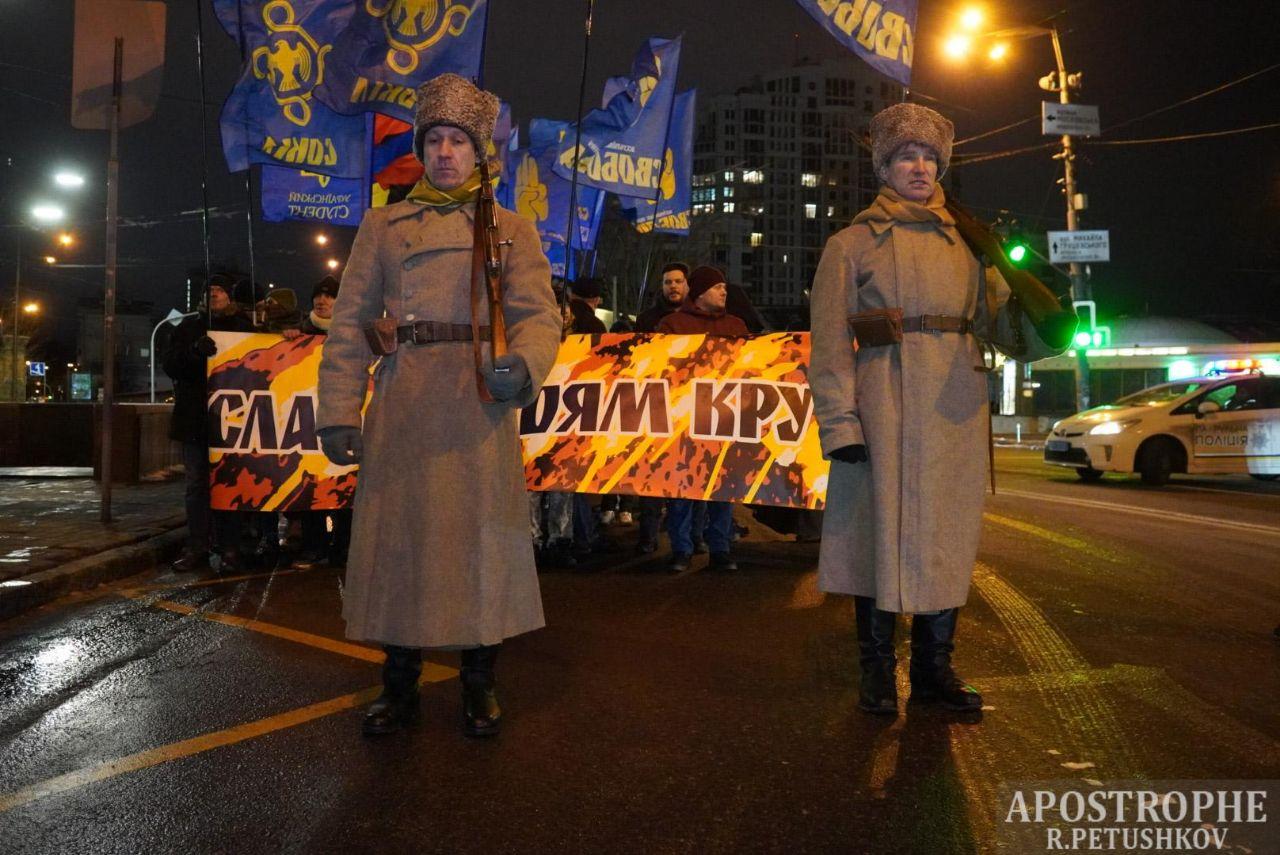 У суботу, 29 січня, у Києві пройшла щорічна хода пам'яті Героїв Крут. Від станції метро "Арсенал" учасники відправились вшанувати полеглих на Аскольдову могилу.