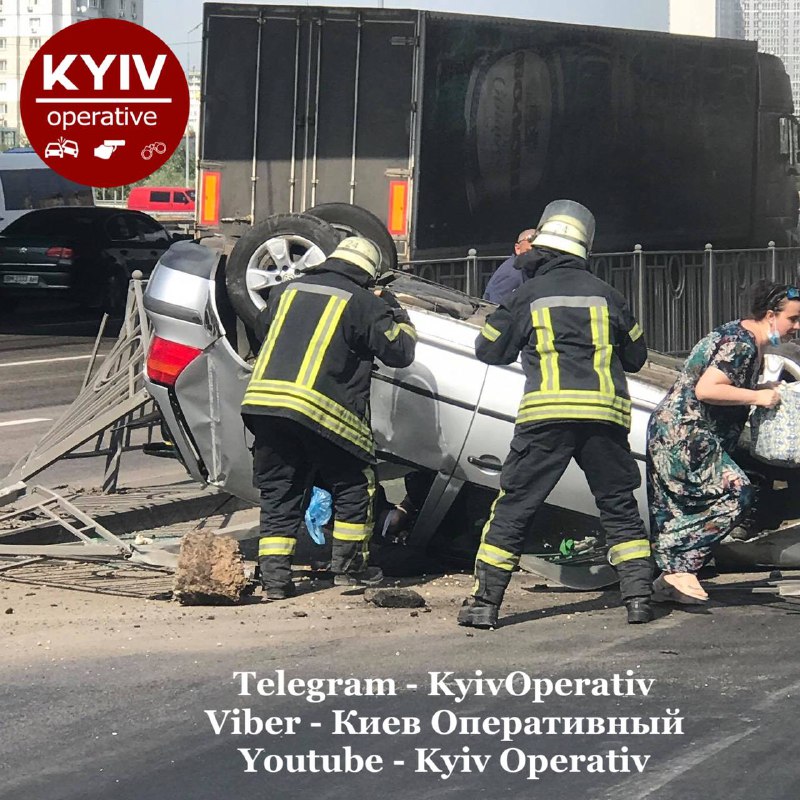 Приблизно о п'ятій годині 25 червня, на проспекті Бажана у Києві, поблизу із станцією метро Позняки, сталося ДТП. Фура підрізала легковик Volkswagen, через що останній перевернувся. Він також зніс кілька метрів огородження біля зупинки для громадського транспорту.