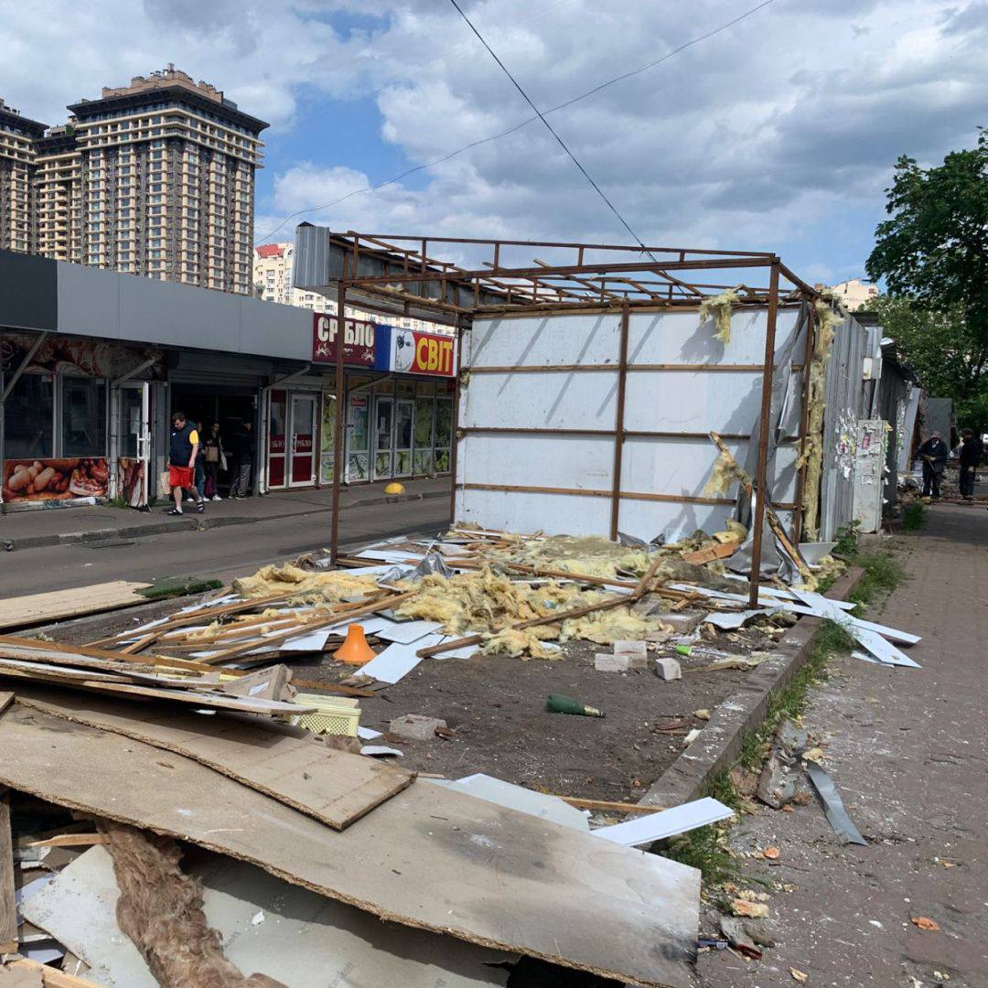 Зокрема прибрали торгівельні ряди біля метро "Мінська" на вул. Левка Лук"яненка, 14. Тимчасові споруди займали понад 100 м² і не мали дозвільних документів.