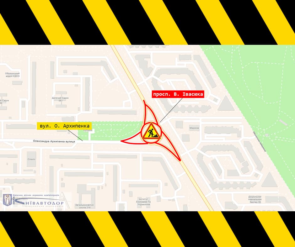 Окрім того, відсьогодні на місяць також частково обмежили рух й на просп. Івасюка (колишній просп. Героїв Сталінграда).