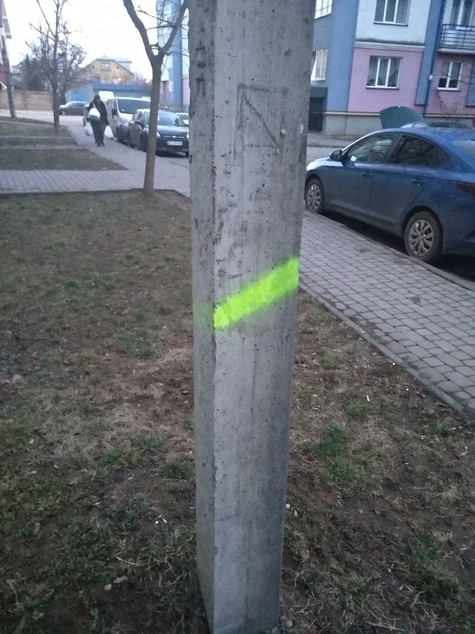 Такі мітки також можна помітити і на стовпах. У таких випадках слід викликати правоохоронні органи.