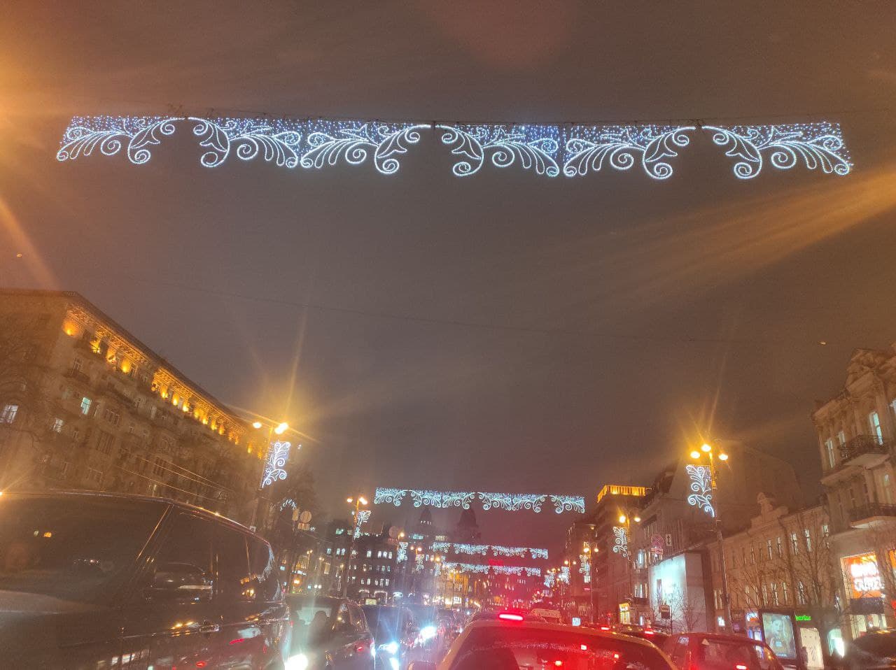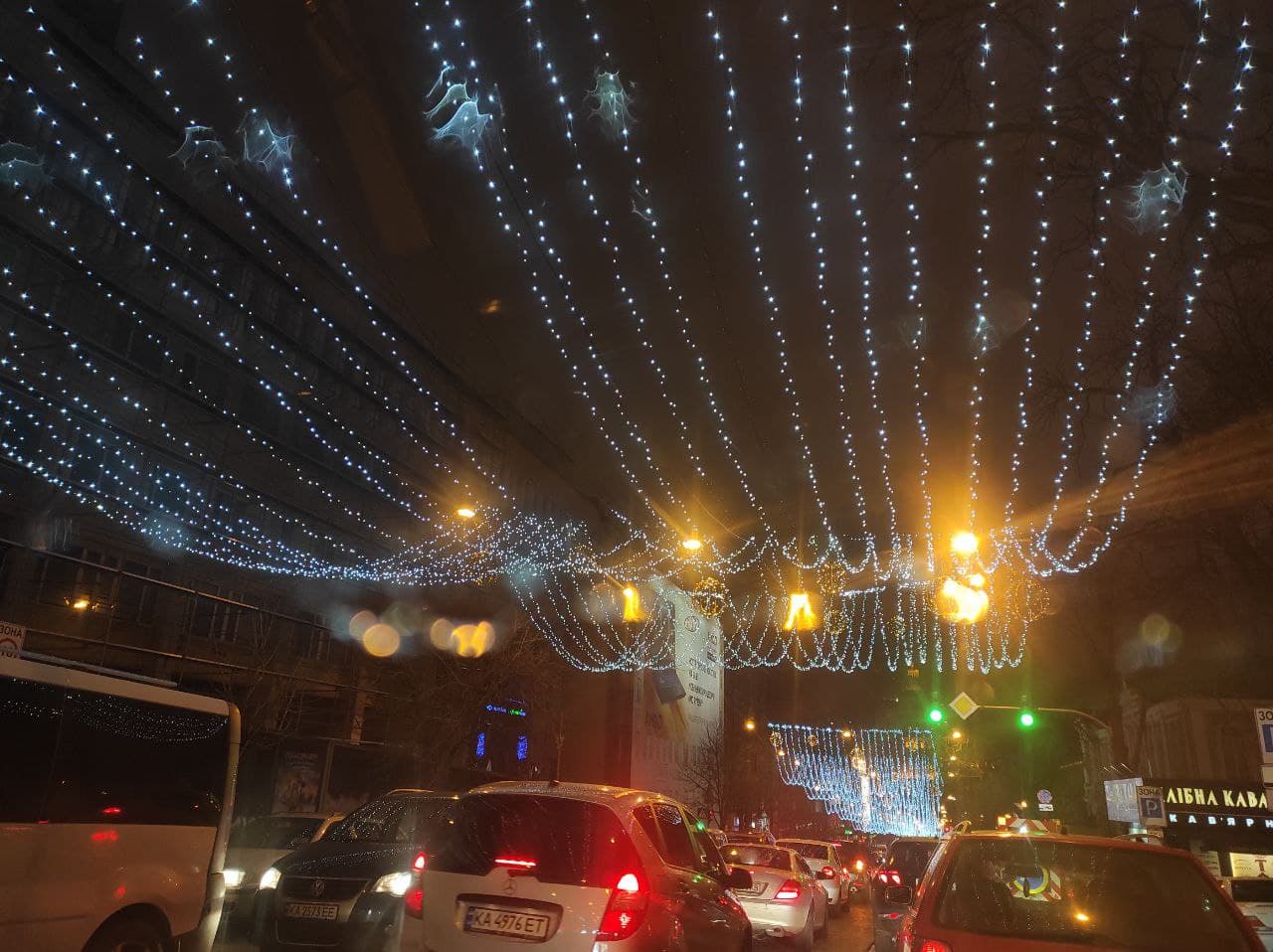 Зважаючи на все, українська столиця вже майже завершила всі свої перетворення, пов'язані з Новим роком та іншими основними зимовими святами. Вулиці міста прикрашають гірлянди та візерунки, що складаються з тисяч вогників синюватого відтінку.